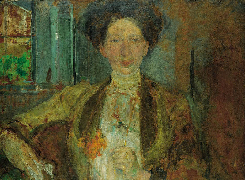 Olga Boznańska (Kraków 1865 - Paryż 1940) – wybitna malarka polska – kształciła się w Krakowie, początkowo pod kierunkiem matki, nauczycielki rysunków Eugenii Mondan, później u J. Siedleckiego, H. Lipińskiego, K. Pochwalskiego. W latach 1884-1886 uczęszczała także na Wyższe Kursy Artystyczne dla Kobiet przy Muzeum Techniczno-Przemysłowym. W 1886 wyjechała do Monachium gdzie uczyła się pod kierunkiem Karla Kricherdorfa i Wilhelma Dürra. Od 1889 pracowała samodzielnie i miała w Monachium własną pracownię. Od 1895 nauczała w prywatnej szkole malarstwa Theodora Humla. Z Monachium wielokrotnie jeździła do kraju, a także do Francji i Szwajcarii. W 1898 przeniosła się na stałe do Paryża, gdzie – przez lata – była jedną z czołowych postaci polskiej kolonii artystycznej. Debiutowała w roku 1886 na wystawie w krakowskim Towarzystwie Przyjaciół Sztuk Pięknych i odtąd stale uczestniczyła w wystawach krajowych i zagranicznych, zdobywając medale i wyróżnienia. W roku 1910 otrzymała francuską Legię Honorową, w roku 1938 order Polonia Restituta. Należała do wielu znaczących – polskich i europejskich – stowarzyszeń artystycznych. Główną domeną jej twórczości był portret – we wcześniejszym, monachijskim okresie często cało postaciowy, monumentalny i zwarty w formie; w czasach paryskich bardziej kameralny, nastrojowy, o zróżnicowanych walorowo plamach barwnych podporządkowanych dominacji jednego tonu, gubiących kontury i zacierających ostrość planów. Malowała też martwe natury i – rzadziej – pejzaże miejskie czy kompozycje rodzajowe.