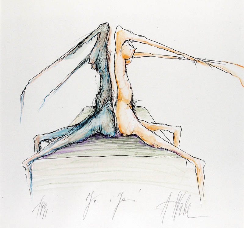 Alicja Wahl (Warszawa 1932- Konstancin Jeziorna 2020) i jej siostra bliźniaczka Bożena studiowały w latach 1952-1957 na Wydziale Malarstwa Akademii Sztuk Pięknych w Warszawie pod kierunkiem Eugeniusza Eibischa. W latach 60. siostry wystawiały razem, pokazywały prace rysunkowe i graficzne m. in. w Galerii Krzywe Koło w Warszawie (1961), Galerii Sztuki Nowoczesnej tamże (1965, 1966), Galerie Le Ranelagh w Paryżu (1968). W latach 70. współpracowały z tygodnikiem "Kultura" i z wydawnictwami jako rysowniczki i ilustratorki. Projektowały też scenografie do spektakli Teatru TV. W 1979 wspólnie założyły Galerię Alicji i Bożeny Wahl w Warszawie, jedną z pierwszych polskich galerii prywatnych. Specjalizowała się ona w prezentowaniu artystów hołdujących szeroko pojmowanej stylistyce i poetyce surrealizmu oraz ekspresyjnej i metaforycznej figuracji - co odzwierciedla również zainteresowania artystyczne założycielek galerii. Twórczość malarska obu artystek reprezentuje podobną stylistykę i dotyczy zbliżonych sfer doznań - poczucia samotności, dramatu istnienia, tajemniczych sił przyrody. Płótna i kartony Alicji Wahl zaludniają postaci formowane nerwową, zanikającą kreską i lekkimi plamami delikatnych barw. Artystki zdaje się nie interesować przestrzeń ani pejzaż, skupia się na dramacie wewnętrznym osób. Nie unika też rozwiązań przywodzących na myśl symbolizm przełomu XIX i XX wieku.