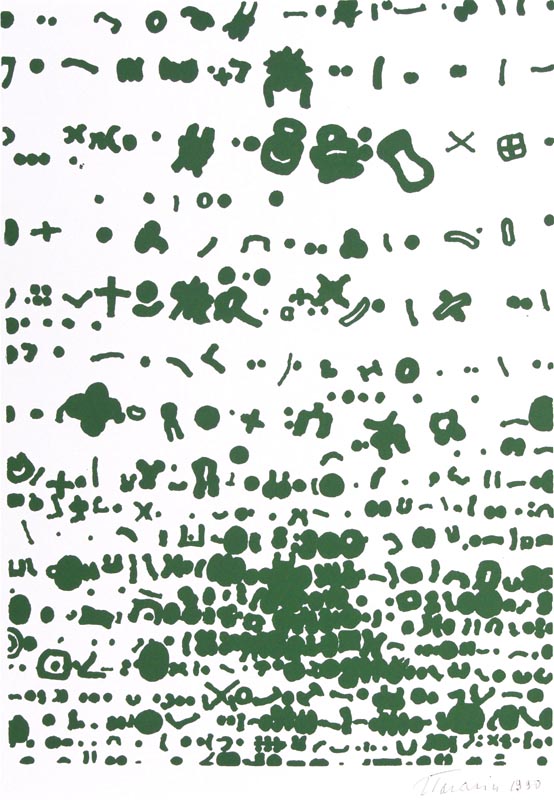 Jan Tarasin (Kalisz 11 IX 1926 - Warszawa 8 VIII 2009) studiował malarstwo w ASP w Krakowie pod kierunkiem prof. Zbigniewa Pronaszki (1946-1951). Jeszcze jako student zadebiutował na I Wystawie Sztuki Nowoczesnej w Krakowie w 1948/49. W połowie lat 50. stworzył cykle litografii: „Nowa Huta i jej mieszkańcy“, 1954, „Dom“, 1955). W pierwszym przeciwstawił się oficjalnemu optymizmowi, w drugim, operując symboliką martwej natury, zawarł treści egzystencjalne i odnoszące do niedawnego dramatu wojny. Po 1956 zaczął malować obrazy niefiguratywne. Układy wyodrębnionych elementów (określanych jako „przedmioty“) umieszczane były przez artystę na płaszczyźnie (cykl „Wnętrze“, 1957) ), lub w aluzyjnej przestrzeni (cykle „Uczta“, 1957, „Brzeg“, 1962-1964, „Przedmioty policzone“, od 1968, „Antykwariat“, 1968). Zasada ta utrzymuje się w jego malarstwie w następnych latach, różnice między okresami twórczości dotyczą sposobu opracowania „przedmiotów“ i ich usytuowania w przestrzeni obrazu lub wobec tła. Od lat 70. „przedmioty“ zmieniają się w graficzne, zwykle czarne znaki na jasnych tłach (cykl „Kolekcja“, od 1971). Tła z kolei bywają iluzyjnie przestrzenne, zróżnicowane walorowo, miękkie. W latach 90. artysta wrócił do kolorystycznego, bardziej malarskiego rozwiązywania zarówno znaków, jak i teł, często ciemnych lub przenikających się z „przedmiotami“ (cykl „Wylęgarnia przedmiotów“, 1992). Tarasin od 1962 jest członkiem „Grupy Krakowskiej“. W 1963-67 uczył na Wydziale Architektury Wnętrz krakowskiej ASP. W 1967 przeniósł się do Warszawy, w 1974 podjął pracę pedagogiczną na Wydziale Malarstwa ASP w Warszawie. W 1987-90 był rektorem tej uczelni. W 1976 otrzymał Nagrodę Krytyki Artystycznej im. Cypriana Kamila Norwida, w 1984 Nagrodę im. Jana Cybisa.; Nagroda na MB Sztuki w San Marino 1965. Równolegle z malarstwem zajmował się rysunkiem i grafiką - do lat 60. litografią, od 1974 serigrafią. W 1974-1981 wydał 8 autorskich „Zeszytów“ z serigrafiami i własnymi tekstami. W 1995 w Galerii Zachęta odbyła się wystawa artysty, której towarzyszył monograficzny katalog.