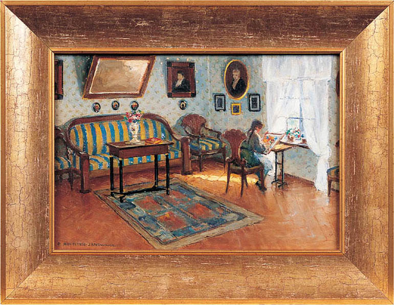 Bronisława Rychter-Janowska (Kraków 1868 - Kraków 1953) – artystka nazywana „malarką ginących polskich dworków”, naukę malarstwa rozpoczęła w Krakowie pod kierunkiem brata, malarza Stanisława Janowskiego oraz na kursach A. Baranieckiego. Prywatnych lekcji udzielał jej także Ludwik Boller (monachijski malarz, pracujący wówczas nad Panoramą Tatr). W 1896 wyjechała na dalsze studia do Monachium i uczyła się u Antona Ažbé’go i Szymona Hollósy’ego. Wiele podróżowała, wyjeżdżając jeszcze na Węgry i do Włoch, gdzie studiowała jeszcze w Akademii florenckiej i w Rzymie. Początkowo związana z Krakowem, ok. 1906 zamieszkała w Starym Sączu, gdzie przez pewien czas prowadziła prywatną szkołę malarstwa. W 1917 wróciła do Krakowa. Nadal dużo podróżowała, wyjeżdżając „w poszukiwaniu piękna” do Włoch, północnej Afryki czy Turcji. Malowała olejno, akwarelą, pastelem, wykonywała makaty i aplikacje. Począwszy od 1901 wielokrotnie pokazywała swoje prace na wystawach w Krakowie, Warszawie, we Lwowie , Pradze, Wiedniu, Rzymie, Wenecji, Florencji. Malowała liczne pejzaże (w tym wiele włoskich), widoki i wnętrza dworów czy kościołów, sceny z życia wsi, a także portrety. Zajmowała się publicystyką i twórczością literacką (m.in. powieść Poza Rzymem, nowela Strzygoń); była autorką kilku dramatów (Mnich, Pasożyt) i obszernych Pamiętników. Była żoną malarza Tadeusza Rychtera, szwagierką Gabrieli Zapolskiej.
