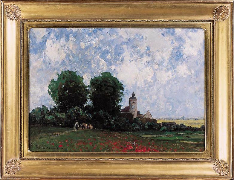 Krajobraz z kościołem wśród drzew, ok. 1900