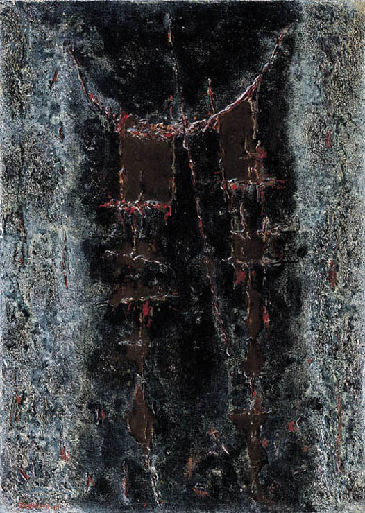 Rajmund Ziemski (Radom 1930 - Warszawa 2005) studiował malarstwo w latach 1949-1955 pod kierunkiem Artura Nachta-Samborskiego w Akademii Sztuk Pięknych w Warszawie. W roku dyplomowym wziął udział w Ogólnopolskiej Wystawie Młodej Plastyki w warszawskim Arsenale. Od 1958 wykłada w macierzystej uczelni, prowadząc w niej pracownię malarstwa, jedną z najchętniej wybieranych przez studentów jako pracownia dyplomowa. Prowadzący ją profesor jest również autorytetem artystycznym, jednym z najwybitniejszych przedstawicieli nurtu abstrakcji niegeometrycznej w polskim malarstwie powojennym. We wczesnym cyklu „Ptaki“ (1957-1958) operował kształtami bardzo uproszczonymi, malowanymi impasto na tłach zazwyczaj ciemnych, często o bogatej fakturze. Od początku lat 60. obrazy Ziemskiego przybrały charakterystyczny kształt wydłużonego prostokąta, w którego polu, niczym rozpięte, dramatyczne płachty, rozpościerały się aluzyjne pola koloru i faktury. Nosiły tytuły sugerujące związki z naturą, jednak górę w nich bierze zainteresowanie malarza kolorem i materią, traktowanymi autonomicznie, w oderwaniu od jakichkolwiek sugestii przedmiotowych. Te powróciły w znamiennym epizodzie z połowy lat 60., kiedy to artysta włączał w strukturę swych obrazów, często wtedy łączonych w Tryptyki, fotograficzne wizerunki twarzy ludzkich. Potem zarzucił ten proceder na rzecz dalszego rozwijania prób kolorystycznych, idących w kierunku ostrych kontrastów i niekiedy kakofonicznych zestawień. Pozostaje przy tym przy ustalonym jeszcze w latach 60. sposobie tytułowania i oznaczania prac (wielki, malowany do dziś cykl „Pejzaże“ z obrazami numerowanymi liczbą łamaną przez datę roczną).