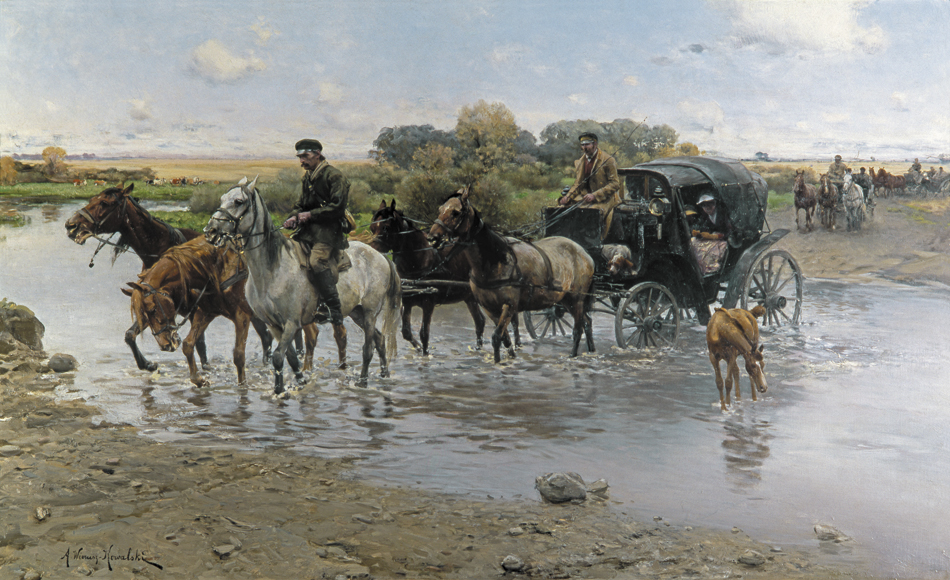 Alfred Wierusz-Kowalski (Suwałki 1849 – Monachium 1915) - jeden z najwybitniejszych polskich malarzy tzw. szkoły monachijskiej był, obok Józefa Brandta i Władysława Czachórskiego, także najpopularniejszym z polskich artystów osiadłych i stale działających w Monachium. Zamieszkał tam w roku 1873, już po studiach w Warszawie i w Dreźnie. Przez rok uczył się jeszcze w monachijskiej Akademii Sztuk Pięknych pod kierunkiem Alexandra Wagnera, a następnie przeniósł się do prywatnej pracowni Brandta. Uznanie krytyki i publiczności zdobył wcześnie; jego obrazy, odznaczane medalami na wystawach były rozchwytywane przez kolekcjonerów i niemieckich handlarzy. W roku 1890 został honorowym profesorem Akademii monachijskiej. Malował sceny rodzajowe i rodzajowo-historyczne z motywami jeźdźców, rycerzy, myśliwych, koni, wilków i śniegów. Po podróży do Afryki w roku 1903 podejmował też tematy orientalne. W polskich zbiorach muzealnych znalazło się stosunkowo niewiele prac artysty – jego obrazy sprzedawane głównie na rynku niemieckim w większej liczbie trafiały do kolekcji prywatnych, głównie w Niemczech i Stanach Zjednoczonych. Obecne często pojawiają się i na polskim rynku sztuki, zawsze budząc zainteresowanie kolekcjonerów.