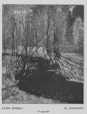 Stanisław Żukowski (Jędrychowice k. Grodna 1875 - Pruszków 1944) – malarz pejzażysta; w latach 1892-1901 studiował w Moskiewskiej Szkole Malarstwa, Rzeźby i Architektury, m.in u Siergieja Korowina, Abrama Archipowa i Isaaka Lewitana. Po studiach pozostał w Rosji. Od 1896 uczestniczył w wystawach Towarzystwa Pieriedwiżników; w roku 1907 otrzymał tytuł akademika. Od 1923 stale mieszkał w Warszawie, gdzie wielokrotnie wystawiał w Towarzystwie Zachęty Sztuk Pięknych. Był przede wszystkim znakomitym pejzażystą; malował także wnętrza i rzadziej portrety. Jego obrazy, zawsze wysoko cenione, niejednokrotnie były odznaczane medalami na wystawach - m.in. w roku 1912 na międzynarodowej wystawie w Monachium nagrodzono złotym medalem Jesienny wieczór. Podczas pobytu w Rosji, artysta najczęściej podpisywał swoje prace cyrylicą, później alfabetem łacińskim. Wiele jego obrazów znajduje się w polskich zbiorach muzealnych oraz w muzeach Moskwy, Petersburga i Mińska. Katalog znanych dzieł artysty zawiera bogato ilustrowana monografia, autorstwa M.U.Goriełowa [Stanisław Julianowicz Żukowskij, Moskwa 1982].