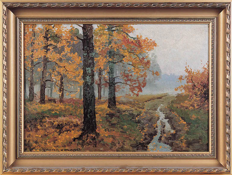 Wiktor Korecki (Kamieniec Podolski 1890 - Komorów k. Warszawy 1980) - malarz pejzażysta - gimnazjum ukończył w Kijowie, tam też studiował w Szkole Rysunkowej Aleksandra Muraszki. Po studiach wrócił do Kamieńca Podolskiego, skąd w roku 1921 wyjechał do Warszawy. Tu miał pracownię na rogu ulic Tamki i Cichej. Niestety zgromadzone tam obrazy spłonęły w czasie powstania 1944 roku. Po powstaniu artysta przebywał w obozie w Pruszkowie skąd trafił do obozu pracy w Lipsku. Do kraju powrócił w roku 1946 i zamieszkał w Komorowie pod Warszawą, a później w Milanówku. Jego nastrojowe krajobrazy emanujące spokojem i pogodą cieszyły się zawsze dużą popularnością. Korecki najczęściej malował pejzaże zimowe z motywem leśnej drogi i strumienia wijącego się wśród śniegów, a obok nich także wiosenne, letnie czy jesienne widoki z Mazowsza.