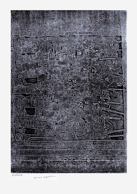 Roman Opałka (Abbéville, Francja 1931 - Rzym 2011) po przyjeździe wraz z rodziną do Polski uczył się w szkole poligraficznej w Nowej Rudzie, po czym podjął studia w Państwowej Wyższej Szkole Sztuk Plastycznych w Łodzi (1949-1950). Kontynuował je w ASP w Warszawie (1950-1956). We wczesnym okresie tworzył cykle malarskie i rysunkowe („Chronomy“, 1961-1963, „Fonematy“, 1963-1964, „Alfabet grecki“, 1965), obiekty przestrzenne („Poduszkowce“, „Integracje“, 1964-1966) oraz cykle graficzne i ilustracje. Od 1965 realizuje program „Obrazów liczonych 1-oo “, który jest projektem na całe życie, polegającym na zapełnianiu powierzchni obrazów kolejnymi liczbami. Już w trakcie realizacji tego programu, w 1965-67 i 1968-70 wykonał dwa cykle graficzne: poświęcony Rewolucji Październikowej (litografie barwne) i „Opisanie świata“ (kwasoryty), za który zdobył liczne nagrody na wystawach międzynarodowych. Od 1970 kontynuuje wyłącznie „Obrazy liczone“ w malarstwie („Detale“), rysunku („Kartki z podróży“) oraz rejestracjach fotograficznych, video i dźwiękowych. Od polowy lat 70. mieszka we Francji. Reprezentował Polskę na Biennale w Wenecji w 1995.