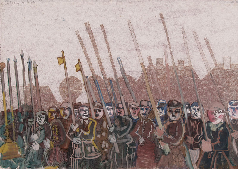 Edward Dwurnik (Radzymin 19 IV 1943 - Warszawa 28 X 2018) studiował malarstwo w ASP w Warszawie (1963-1970), jednak jako swego „mistrza“ wymienia Nikifora. Jego to prace, zobaczone po raz pierwszy w 1965, zainspirowały ówczesnego studenta III roku do narysowania pierwszych prac z cyklu „Podróże autostopem“, które kontynuował w nastepnych latach. W 1972-1978 powstawał cykl „Sportowcy“, w którym portretowane były, dodajmy - kąśliwie, typowe postaci z lat 70. Równolegle od 1975 powstawał cykl „Robotnicy“, który kulminował w okresie „Solidarności“ 1980-1981. Za prace z tego cyklu Dwurnik otrzymał w 1981 Nagrodę Krytyki Artystycznej im. Cypriana Kamila Norwida, natomiast za obrazy z cyklu „Warszawa“ (1981), proroczo zapowiadające stan wojenny - Nagrodę Kulturalną „Solidarności“ podziemnej w 1983. W latach 80. malarstwo Dwurnika przybrało wyraz ekspresyjny i dramatyczny. Powstające w tej dekadzie obrazy miały niejednokrotnie wymowę polityczną, przybierały też kostium historyczny, tak czy inaczej odnoszący się do współczesnych spraw i realiów. Cykl „Droga na Wschód“ (1989-91) upamiętniał ofiary stalinizmu, natomiast cykl „Od Grudnia do Czerwca“ (1990-94) - ofiary stanu wojennego. Zarówno ideowe, jak i czysto malarskie walory tych prac przyniosły artyście ogromne uznanie, zarówno w kraju jak i za granicą. Jego wyrazem była prestiżowa nagroda Fundacji Coutts & Co w Zurychu (1992). W latach 90. powstają cykle będące kontynuacją „Podróży autostopem“: „Niebieskie miasta“ (od 1993) i „Diagonale“ (od 1996), jak również kompozycje nowego typu, jak widoki morskie (cykl „Błękitne“, 1992-93) czy cykl „Wyliczanka“ (1996-99). Artysta wiele wystawia, miał ok. 100 wystaw indywidualnych w Polsce i za granicą, brał też udział w licznych wystawach i festiwalach krajowych i międzynarodowych, m.in.: X Biennale Sztuki Współczesnej, Menton 1974, Documenta 7, Kassel 1982, 5th Biennale, Sydney 1985, XIX Biennale Sztuki, Sao Paulo 1987; Olimpiada Sztuki, Seul 1988. Równolegle z malarstwem uprawiał rysunek, collage, grafikę warsztatową (litografia, techniki metalowe, kserografia, stemple) i użytkową (ilustracja, plakaty do własnych wystaw indywidualnych).