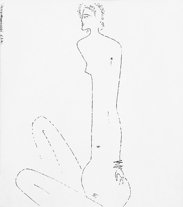 Jerzy Nowosielski (Kraków 1923 - Kraków 2011) w 1940 zaczął studia w Kunstgewerbeschule w Krakowie. W 1942 przebywał przez niecały rok w Ławrze św. Jana Chrzciciela pod Lwowem. Studiował tam sztukę malowania i historię ikon. Po powrocie do Krakowa w 1943 nawiązał ponowne kontakty z kręgiem przyszłej Grupy Krakowskiej. Po wojnie kontynuował studia w ASP w Krakowie pod kierunkiem prof. Eugeniusza Eibischa (1945-1947). Na I Wystawie Sztuki Nowoczesnej w Krakowie w 1948/49 pokazał obrazy utrzymane w nurcie abstrakcji geometrycznej. W latach socrealizmu nie wystawiał, zajmując się w tym czasie scenografią oraz malowaniem cerkwi i kościołów. W 1955 w Łodzi zaprezentował swą pierwszą wystawę indywidualną, w 1956 wziął udział w XXVIII Biennale w Wenecji. W latach 1957-1962 był pedagogiem w Państwowej Wyższej Szkole Sztuk Plastycznych w Łodzi, następnie w Akademii krakowskiej, gdzie wykładał na Wydziale Malarstwa do przejścia na emeryturę w 1993. W drugiej połowie lat 50. osiągnął charakterystyczny styl aktów, pejzaży i scen figuralnych we wnętrzach, który zawdzięczał swej fascynacji ikoną i doświadczeniom z malarstwem sakralnym. W 1976 podjął na nowo realizacje monumentalne, wykonując m.in. malowidła ścienne, stacje Drogi Krzyżowej i projekty witraży w kościele Opatrzności Bożej w Wesołej pod Warszawą (1976-1979). Artysta powszechnie uznawany był za autorytet w dziedzinie sztuki zakorzenionej w wartościach duchowych.