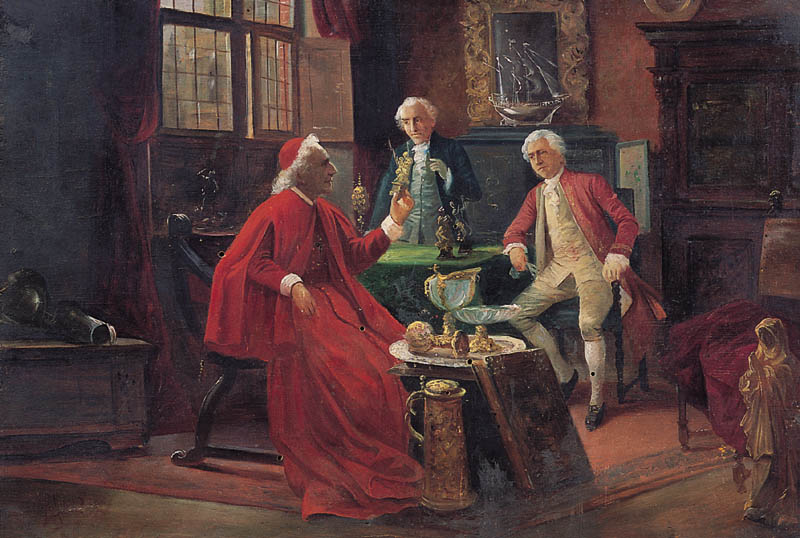 w karty), postaci w swych obrazach grupował wciąż w nowe, odmienne układy kompozycyjne. Dużą wagę przykładał do detalu, z maestrią oddając szczegóły bogatych strojów, tkanin czy mebli.