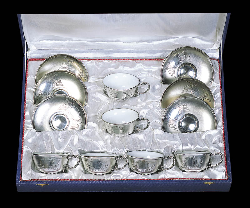 KOMPLET 6 FILIŻANEK I SPODKÓW, przed 1900
