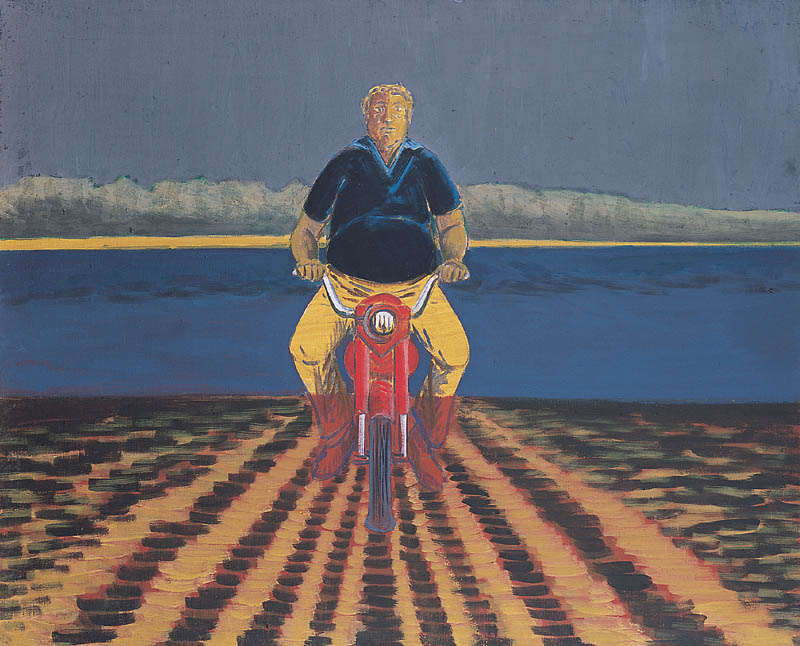 Jarosław Modzelewski (Warszawa 1955, mieszka w Warszawie) studiował malarstwo w ASP w Warszawie w latach 1975-1980, uzyskując dyplom w pracowni Stefana Gierowskiego. Od 1982 pracuje jako pedagog na macierzystym wydziale. W 1982 był współzałożycielem „Gruppy”, najważniejszego ugrupowania nurtu nowej ekspresji lat 80., działającego do 1992. W latach 1991-1996 wspólnie z Markiem Sobczykiem prowadził prywatną Szkołę Sztuki w Warszawie. Od wielu lat współpracuje z Galerią Zderzak w Krakowie. W początkowym okresie twórczości skłaniał się ku abstrakcji, wykorzystywał uproszczone znaki i emblematy oraz sylwetki odbite z szablonu. W 1985 namalował cykl oparty na ilustracjach do podręczników języka rosyjskiego, obrazujący proste czynności, których czasownikowe określenia stanowią tytuły prac. W 1986-1989 powstawały obrazy utrzymane w konwencji realistycznej, jednak zarazem o surrealnej atmosferze uzyskiwanej różnymi metodami, np. przez dublowanie figur, ukazywanie postaci w sytuacji niepewności czy zagrożenia, zabiegi z przestrzenią. W grupie obrazów z 1988 artysta rezygnuje z postaci ludzkiej na rzecz wyjątkowego nasycenia emocją samej przestrzeni pejzaży i wnętrz. Około 1990 wraca do kompozycji akcentujących czynności wykonywane przez postaci, które często umieszczone są w pustej, zaledwie zasugerowanej, acz dominującej przestrzeni. Odrealnienia i monumentalności dodaje tym obrazom płaskie i rozległe kładzenie koloru.