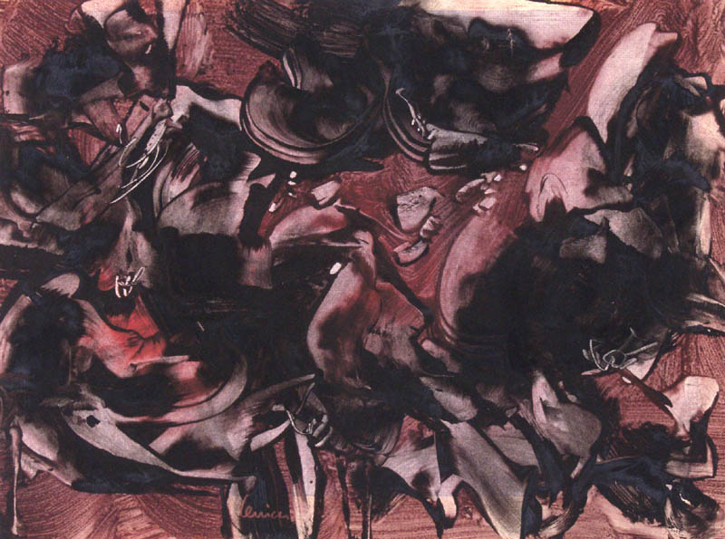 Alfred Lenica (Pabianice 1899 - Warszawa 1977) uczył się prywatnie rysunku i malarstwa w pracowniach Artura Hannytkiewicza i Piotra Kubowicza w Poznaniu (1925-1928). W latach 30. malował obrazy figuratywne, nawiązujące w stylistyce do kubizmu. Nieco później uległ wpływom surrealizmu, który, pomijając lata socrealizmu, stanie się dlań najpoważniejszym obszarem poszukiwań malarskich. Od połowy lat 40. utrzymywał stałe kontakty z kręgiem „Grupy Krakowskiej“, przyjaźnił się z Jerzym Kujawskim. Po przeniesieniu się do Poznania, w 1947 został współzałożycielem awangardowej grupy „4F+R“ (farba, forma, fantastyka, faktura + realizm). Jest autorem pierwszego polskiego obrazu taszystowskiego (Farby w ruchu, 1949, tempera). W okresie socrealizmu włączył się w nurt oficjalnej sztuki, pracując jednocześnie jako organizator życia artystycznego, prezes Okręgu Poznańskiego ZPAP (1948-1950) i jednocześnie kierownik Pracowni Sztuk Plastycznych tamże. W końcu lat 50. przeniósł się do Warszawy i również tu do 1969 pełnił kierownicze funkcje w ZPAP. W drugiej poł. lat 50. ponownie - po eksperymentach z lat 40. - uprawiał informel, malując chętnie techniką drippingu. Około 1958 wypracował indywidualny, charakterystyczny dlań styl wirujących, kolorowych, niekiedy kaligraficznie opracowanych form, które dynamicznie wypełniały pola obrazów. Tworzył je techniką zbliżoną do surrealistycznej dekalkomanii. Styl ten stał się znakiem rozpoznawczym artysty do końca życia. W swych obrazach nie unikał kształtów nawiązujących do form naturalnych (jego malarstwo nazywano „biologicznym“), a w latach 70. niekiedy włączał do kompozycji motywy figuralne. Wystawa retrospektywna artysty odbyła się w Galerii Zachęta w Warszawie w 1974.