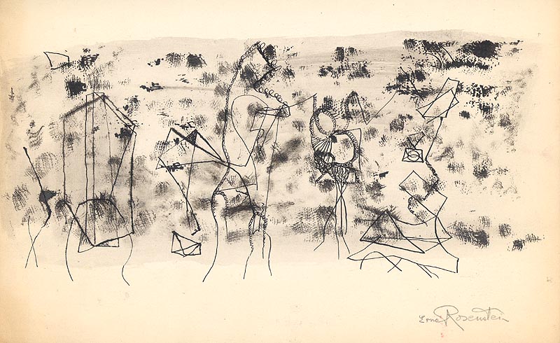 Erna Rosenstein (Lwów 1913 - Warszwa 2004) studiowała w latach 1932-1934 w Wiener Frauen Akademie, a następnie w latach 1934-1936 w ASP w Krakowie pod kierunkiem prof. Wojciecha Weissa. W latach studiów była związana z kręgiem pierwszej „Grupy Krakowskiej”, brała udział w przygotowaniach przedstawień teatru Cricot, sama wystąpiła w spektaklu „Lajkonik krakowski”. W 1937 wyjechała na krótko do Paryża. Tuż przed II wojną przeniosła się do Lwowa. Po ucieczce z tamtejszego getta ukrywała się w Warszawie. Po Powstaniu przebywała w Grodzisku i Częstochowie, a po zakończeniu wojny wróciła do Krakowa. Wystawiała z Grupą Młodych Plastyków (1946) i na I Wystawie Sztuki Nowoczesnej (1948/49). W Krakowie wyszła za mąż za Artura Sandauera. W 1949 przeniosła się do Warszawy. Zaczęła wystawiać na powrót w 1955, od 1957 związała się na stałe z reaktywowaną, tzw. drugą „Grupą Krakowską”. Uczestniczyła w II i III Wystawie Sztuki Nowoczesnej, Warszawa 1957 i 1959 oraz w wielu wystawach, plenerach i sympozjach ruchu awangardowego lat 60., w tym regularnie w Plenerach Koszalińskich w Osiekach (1964-1978) i in. Wystawiała też wielokrotnie na Festiwalach Polskiego Malarstwa Współczesnego w Szczecinie (1962-1988), Spotkaniach Krakowskich, Festiwalach Sztuk Pięknych w warszawskiej Zachęcie itp. W 1972 została laureatką Nagrody Krytyki Artystycznej im. Cypriana Kamila Norwida. Tworzy obrazy, rysunki, collages, książki autorskie i obiekty przestrzenne, dla których wspólnym mianownikiem jest surrealizm, wyrażający się w zaskakujących, poetyckich zestawieniach znaczących elementów, onirycznej metaforyce, bogactwie skojarzeń i wyobraźni. Artystka jest również uznaną poetką, wydała kilka tomików wierszy, mi in. w Czytelniku i Wydawnictwie Literackim.