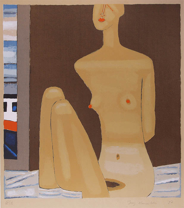 Jerzy Nowosielski (Kraków 1923 - Kraków 2011) w 1940 zaczął studia w Kunstgewerbeschule w Krakowie. W 1942 przebywał przez niecały rok w Ławrze św. Jana Chrzciciela pod Lwowem. Studiował tam sztukę malowania i historię ikon. Po powrocie do Krakowa w 1943 nawiązał ponowne kontakty z kręgiem przyszłej Grupy Krakowskiej. Po wojnie kontynuował studia w ASP w Krakowie pod kierunkiem prof. Eugeniusza Eibischa (1945-1947). Na I Wystawie Sztuki Nowoczesnej w Krakowie w 1948/49 pokazał obrazy utrzymane w nurcie abstrakcji geometrycznej. W latach socrealizmu nie wystawiał, zajmując się w tym czasie scenografią oraz malowaniem cerkwi i kościołów. W 1955 w Łodzi zaprezentował swą pierwszą wystawę indywidualną, w 1956 wziął udział w XXVIII Biennale w Wenecji. W latach 1957-1962 był pedagogiem w Państwowej Wyższej Szkole Sztuk Plastycznych w Łodzi, następnie w Akademii krakowskiej, gdzie wykładał na Wydziale Malarstwa do przejścia na emeryturę w 1993. W drugiej połowie lat 50. osiągnął charakterystyczny styl aktów, pejzaży i scen figuralnych we wnętrzach, który zawdzięczał swej fascynacji ikoną i doświadczeniom z malarstwem sakralnym. W 1976 podjął na nowo realizacje monumentalne, wykonując m.in. malowidła ścienne, stacje Drogi Krzyżowej i projekty witraży w kościele Opatrzności Bożej w Wesołej pod Warszawą (1976-1979). Artysta powszechnie uznawany był za autorytet w dziedzinie sztuki zakorzenionej w wartościach duchowych.