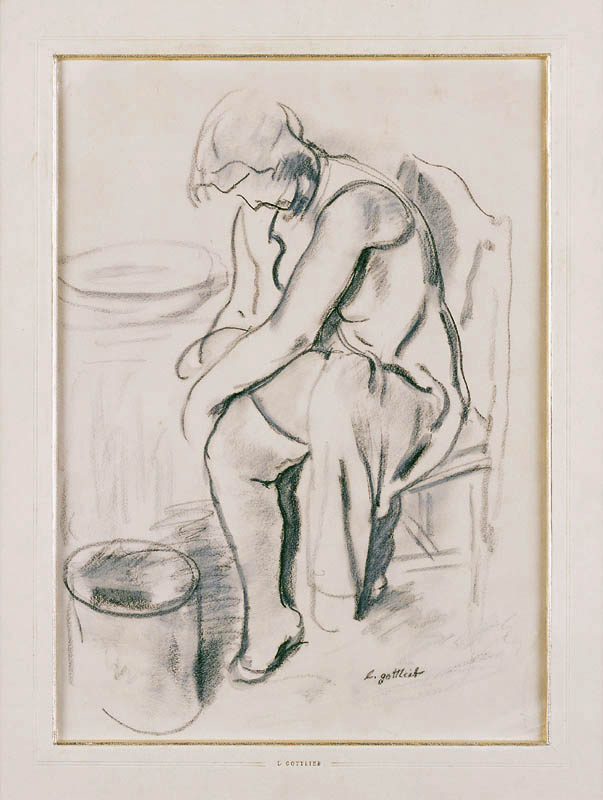 Leopold Gottlieb (Drohobycz 1883 - Paryż 1934) - młodszy brat malarza Maurycego - w latach 1896-1902 studiował w krakowskiej Szkole Sztuk Pięknych pod kierunkiem J. Malczewskiego i T. Axentowicza i następnie w prywatnej szkole A. Ažbego w Monachium. W 1904 na stałe zamieszkał w Paryżu, gdzie związał się z artystycznym środowiskiem Montparnasse'u, blisko przyjaźniąc się z M. Kislingiem i E. Zakiem. W 1910 podróżował do Jerozolimy, gdzie wykładał w Szkole Sztuki i Rzemiosła „Bezalel”. W 1913-1914 był w Hiszpanii. W czasie I wojny światowej służył w I Brygadzie Legionów. Rysował wówczas całe cykle portretów żołnierzy i oficerów, które przyniosły mu znaczną popularność. Po wojnie miał pracownię w Wiedniu, przez dłuższy czas przebywał też w Niemczech. Należał do wiedeńskiego Hagebundu, w 1905 był współzałożycielem „Grupy Pięciu”, w latach 1917-1919 uczestniczył w wystawach „Formistów”, od 1929 był członkiem Stowarzyszenia „Rytm”. Wystawiał w kraju i za granicą, m.in. w Paryżu, Barcelonie, Wiedniu, Berlinie, Zurychu, Bazylei, Genewie, Pittsburghu. We wcześniejszym okresie malował przede wszystkim ekspresyjne portrety, później obrazy o treściach religijnych, a w latach dwudziestych także pejzaże i wielopostaciowe sceny ujęte w rytmiczne układy kompozycyjne. Zajmował się również grafiką. Prace artysty znajdują się w licznych muzeach i kolekcjach prywatnych.