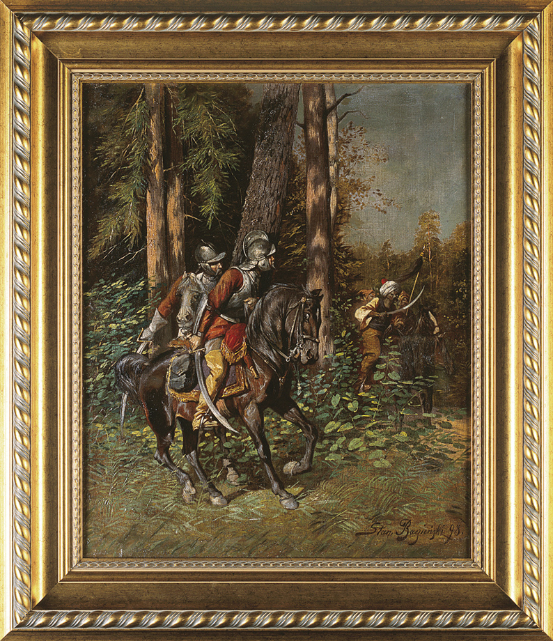 Stanisław Bagieński (Warszawa 1876 - Warszawa 1948) - popularny malarz-batalista, ilustrator - naukę malarstwa rozpoczął pod kierunkiem ojca Feliksa Bagieńskiego, a następnie uczył się w u Wojciecha Gersona w warszawskiej Klasie Rysunkowej. Studia kontynuował w Akademii w Monachium (1901-1903) oraz w Paryżu. Stale mieszkał w Warszawie, gdzie, począwszy od r. 1900, wielokrotnie wystawiał w Towarzystwie Zachęty Sztuk Pięknych. Malował sceny rodzajowe, pejzaże, a przede wszystkim obrazy batalistyczne gloryfikujące bohaterstwo polskiego żołnierza. Jako ilustrator współpracował z warszawskimi czasopisma-mi „Tygodnikiem Ilustrowanym”, „Światem”, „Biesiadą Literacką”. Ilustrował też książki, m.in. historyczne powieści Walerego Przyborowskiego.