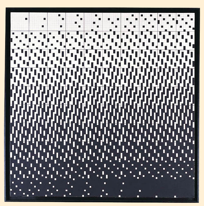 Ryszard Winiarski (Lwów 1936 - Warszawa 2006) ukończył w 1959 Politechnikę Warszawską i podjął studia malarskie w ASP w Warszawie (1960-1966). Pod koniec studiów, w 1965 sformułował własny program artystyczny i zrealizował pierwsze prace z serii pt. „Próby wizualnej prezentacji rozkładów statystycznych“. Otrzymał za nie I nagrodę na Sympozjum Artystów i Naukowców w Puławach w 1966. Jako stałe moduły prac przyjął kwadraty w kolorach czerni i bieli, których kolejnością i rozmieszczeniem rządzi przypadek - rzut kostką do gry, losowanie lub wybór liczb przypadkowych. W 1970 wprowadził do swych prac trzeci wymiar w formie obrazów przestrzennych lub jako iluzję przestrzeni uzyskaną przez wykreślanie perspektywy linearnej. W 1971 powstały pierwsze obrazy z wmontowanymi lustrami. Od 1972 artysta aranżował też „gry“ z udziałem widzów, którzy stosując jego środki i metodę wypełniali płaszczyznę czy pomieszczenie własną „wystawą“. Od ok. 1983 Winiarski włączył do swych prac elementy znaczeniowe, symboliczne i odwołujące się do emocji, jak kształt krzyża, naturalne materiały i zabiegi na nich, np. gięcie (instalacje: Geometria w stanie napięcia, 1984, Czarny kwadrat czyli fruwająca geometria, 1984, Hommage dla Henryka Stażewskiego, 1989). Równolegle artysta od 1960 uprawiał scenografię teatralną, będąc autorem kilkudziesięciu realizacji w tej dziedzinie w teatrach całej Polski. Uczestniczył w wielkiej liczbie wystaw w Polsce i za granicą, w tym: Biennale w Sao Paulo 1969, I i II Biennale des Konstruktivismus, Norymberga 1969 i 1971, Konstrukcja w procesie, Łódź 1981 i Monachium 1985. Zmarł 4 grudnia 2006 w Warszawie.