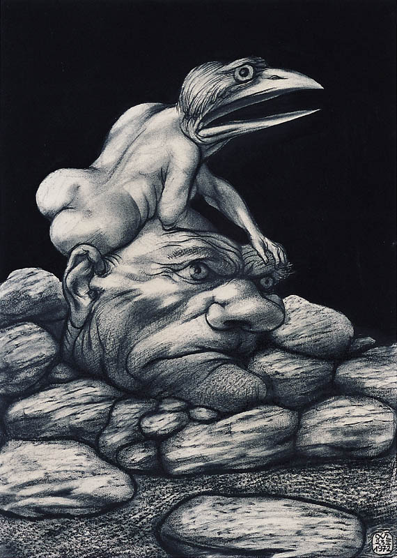 Adam Hoffmann (Kraków 1918 - Kraków 2001) zaczął naukę w 1938 w prywatnej szkole malarstwa A.Terleckiego w Krakowie. Kontynuował studia w latach 1940-42 w krakowskiej Kunstgewerbeschule (będącej zakonspirowaną przedwojenną Akademią). W latach okupacji nawiązał kontakty z gronem artystów skupionych wokół Tadeusza Kantora, późniejszych członków Grupy Młodych Plastyków i od 1957 Grupy Krakowskiej (do której jednak nie przystąpił). W latach 1945-48 dopełnił studiów na Wydziale Malarstwa ASP w Krakowie pod kierunkiem Eugeniusza Eibischa, uczył się też grafiki u Konrada Srzednickiego. Od 1949 był pedagogiem w liceach plastycznych w Katowicach i Krakowie. Od 1950 był związany z Wydziałem Grafiki – filią krakowskiej ASP w Katowicach. W 1974 przeniósł się do ASP w Krako-wie, gdzie prowadził pracownię rysunku na Wydziale Grafiki do emerytury w 1978. Uczył m.in. póź-niejszych członków grupy „Wprost”, z którymi utrzymywał kontakty i powinowactwo artystyczne w późniejszych latach, będąc przez nich traktowany jako nestor i autorytet, również moralny. Choć zajmował się malarstwem sztalugowym, w sposób najbardziej charakterystyczny wypowiedział się w rysunkach pastelem, węglem i tuszem, o kolorystyce ograniczonej lub wręcz monochromatycznych. W realistycznym, nieco karykaturalnym stylu przedstawiał międzyludzkie konflikty, uczucia i sytuacje z pozoru codzienne, nasycone jednak refleksją o charakterze szerszym, egzystencjalnym. Zajmował się również grafiką użytkową i ilustracją, jest autorem publikacji z zakresu nauczania w szkolnictwie artystycznym.