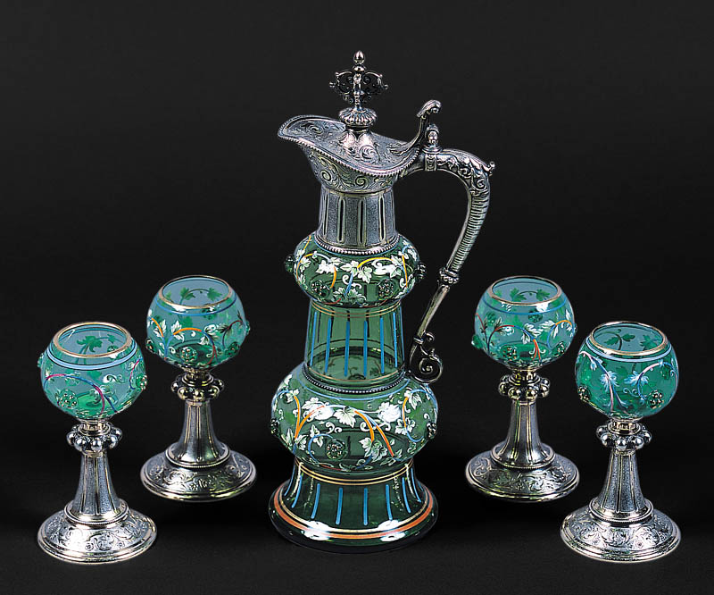 DZBAN I CZTERY KIELISZKI DO WINA, przed 1900