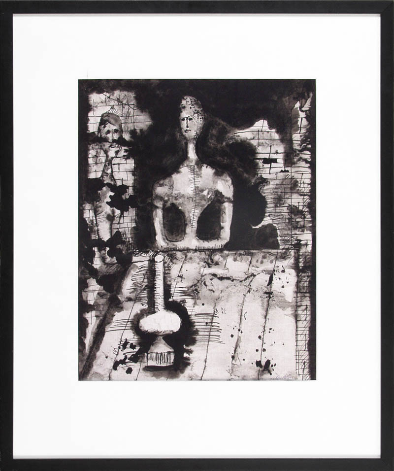 Jan Lebenstein (Brześć Litewski 1930 - Kraków 1999) w latach 1948-1954 studiował malarstwo w ASP w Warszawie pod kierunkiem prof. Eugeniusza Eibischa i Artura Nachta-Samborskiego. W 1955 wziął udział w wystawie w warszawskim Arsenale. Zaprzyjaźniony w czasie studiów z Mironem Białoszewskim, swą pierwszą wystawę indywidualną pokazał w 1956 w Teatrze na Tarczyńskiej. W 1959 zdobył Grand Prix de la Ville de Paris na I Biennale Młodych w Paryżu i w tym roku przeniósł się na stałe do Paryża. Po seriach "figur kreślonych" (na papierze milimetrowym) i "figur hieratycznych" z lat 1955-1958 maluje cykl "figur osiowych" (1958-1962), które wystawia w Paryżu i USA. Równolegle w 1960 zaczyna rysowane "karnety", rodzaj dziennika, który w przyszłości dostarczy motywów wykorzystanych w obrazach. W latach 1964-1965 maluje "Bestiarium", cykl fakturowych, archaizowanych stworów przypominających prehistoryczne wykopaliska. Bezpośrednio po nich wprowadza do swych obrazów postaci ludzkie i fantastyczne, odgrywające sceny ni to mitologiczne, ni to ze snu, często przesycone erotyką. W 1970 projektuje witraże dla Centre du Dialogue w Paryżu. W W 1971 otrzymuje obywatelstwo francuskie 1974 powstają gwasze inspirowane Folwarkiem zwierzęcym George'a Orwella. W latach 1976-1989 tworzy wyłącznie w technice gwaszu i pastelu, podejmując tematykę mitologiczną i zaczerpniętą z Biblii: cykle ilustracji do Księgi Hioba (wyd. 1979) i do Apokalipsy (wyd. 1986) w nowych przekładach Czesława Miłosza. W 1989 powraca do malarstwa olejnego (cykl "Pergamon"). Artysta otrzymał m. in. nagrodę Fundacji im. Alfreda Jurzykowskiego w 1976, Nagrodę Muzeum Archidiecezji Warszawskiej w 1985, Nagrodę im. Jana Cybisa w 1987.