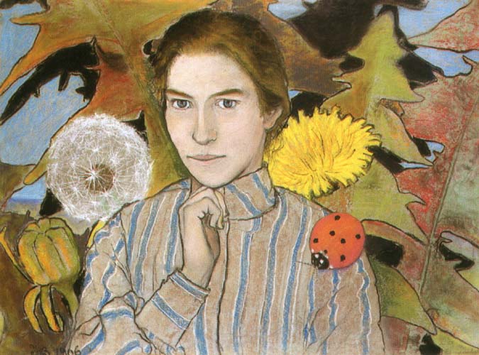 Dziewczyna z dmuchawcami i biedronką
