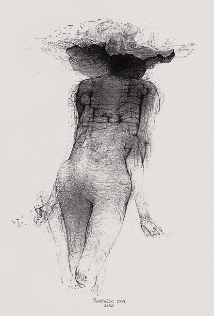 Zdzisław Beksiński (Sanok 24 II 1929 - Warszawa 21 II 2005) studiował w latach 1947-1952 na Wydziale Architektury Politechniki Krakowskiej. Był artystą samoukiem, który osiągnął niekwestionowaną pozycję w polskiej sztuce współczesnej, potwierdzoną obecnością jego prac na prestiżowych wystawach i w kolekcjach muzealnych. Początkowo zajmował się fotografią, którą interesował się od lat studenckich, po 1956 zyskując uznanie jako twórca fotogramów o estetyce opartej o efekty fakturowe. W latach 1958-1962 tworzył abstrakcyjne obrazy-reliefy o bogatej fakturze, głównie metalowe, będące odmianą malarstwa materii. Pod koniec tego okresu powstawały ażurowe formy o kształtach figur i pełnoplastyczne rzeźby w metalu. Kolejnym etapem jego twórczości były lata 1962-1974, kiedy poświęcał się głównie rysunkowi. W latach 60. rysował piórkiem i tuszem figuralne kompozycje odznaczające się karykaturalną deformacją postaci. Od końca lat 60. tworzył rysunki węglem i kredkami, będące monochromatyczną odmianą jego równoległej twórczości malarskiej. Od 1974 zajmował się niemal niepodzielnie malarstwem. Jego charakterystyczny styl bazował na perfekcji technicznej, której towarzyszyła niezwykłość wizji. Malował świat po katastrofie, naznaczony piętnem śmierci i rozpadu. Jego obrazy zaludniają postaci i stwory o ludzkich wprawdzie bądź zwierzęcych kształtach, lecz o cechach fantomów, automatów lub rozpadających się trucheł. Artysta nie nadawał swym obrazom i rysunkom tytułów (poza porządkującymi symbolami), akcentując w ten sposób swój brak zainteresowania dla literackiej strony przedstawień. Sam mówił, że malując całkowicie poddaje się wizji, „fotografuje“ ją. W ostatnich latach włączył do swego warsztatu artystycznego elektroniczne techniki generowania obrazu, które wykorzystywał do tworzenia komputerowych fotomontaży. Sztuka Beksińskiego, wielokrotnie wystawiana i omawiana, budzi skrajne emocje wśród znawców i publiczności.