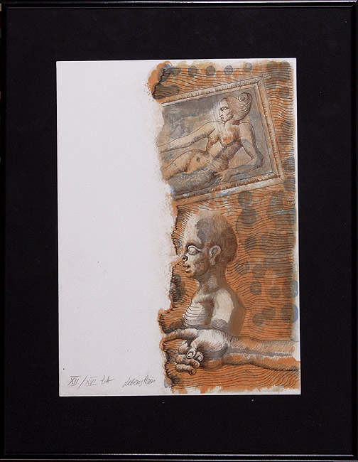 Jan Lebenstein (Brześć Litewski 1930 - Kraków 1999) w latach 1948-1954 studiował malarstwo w ASP w Warszawie pod kierunkiem prof. Eugeniusza Eibischa i Artura Nachta-Samborskiego. W 1955 wziął udział w wystawie w warszawskim Arsenale. Zaprzyjaźniony w czasie studiów z Mironem Białoszewskim, swą pierwszą wystawę indywidualną pokazał w 1956 w Teatrze na Tarczyńskiej. W 1959 zdobył Grand Prix de la Ville de Paris na I Biennale Młodych w Paryżu i w tym roku przeniósł się na stałe do Paryża. Po seriach "figur kreślonych" (na papierze milimetrowym) i "figur hieratycznych" z lat 1955-1958 maluje cykl "figur osiowych" (1958-1962), które wystawia w Paryżu i USA. Równolegle w 1960 zaczyna rysowane "karnety", rodzaj dziennika, który w przyszłości dostarczy motywów wykorzystanych w obrazach. W latach 1964-1965 maluje "Bestiarium", cykl fakturowych, archaizowanych stworów przypominających prehistoryczne wykopaliska. Bezpośrednio po nich wprowadza do swych obrazów postaci ludzkie i fantastyczne, odgrywające sceny ni to mitologiczne, ni to ze snu, często przesycone erotyką. W 1970 projektuje witraże dla Centre du Dialogue w Paryżu. W W 1971 otrzymuje obywatelstwo francuskie 1974 powstają gwasze inspirowane Folwarkiem zwierzęcym George'a Orwella. W latach 1976-1989 tworzy wyłącznie w technice gwaszu i pastelu, podejmując tematykę mitologiczną i zaczerpniętą z Biblii: cykle ilustracji do Księgi Hioba (wyd. 1979) i do Apokalipsy (wyd. 1986) w nowych przekładach Czesława Miłosza. W 1989 powraca do malarstwa olejnego (cykl "Pergamon"). Artysta otrzymał m. in. nagrodę Fundacji im. Alfreda Jurzykowskiego w 1976, Nagrodę Muzeum Archidiecezji Warszawskiej w 1985, Nagrodę im. Jana Cybisa w 1987.