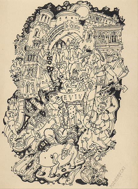 tusz pióro, karton kremowy
