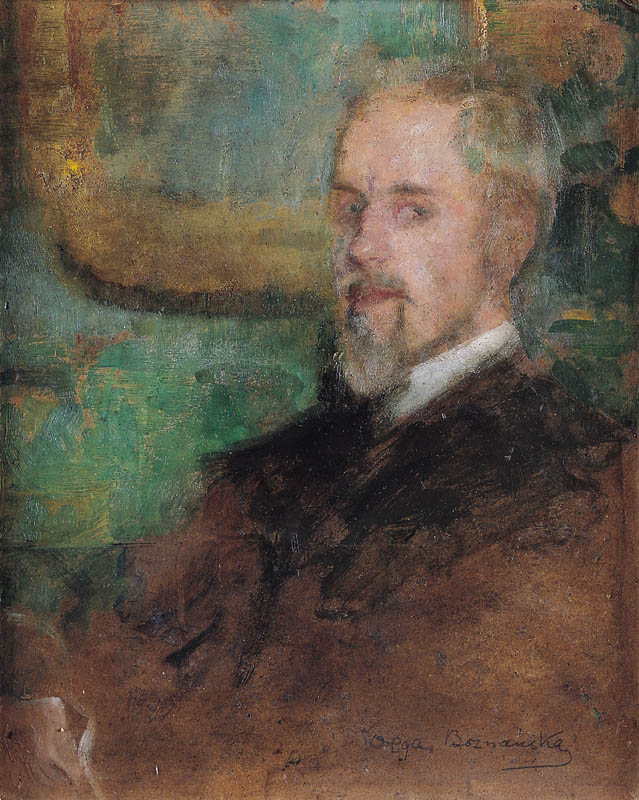 Olga Boznańska (Kraków 1865 - Paryż 1940) – wybitna malarka polska – kształciła się w Krakowie, początkowo pod kierunkiem matki, nauczycielki rysunków Eugenii Mondan, później u J. Siedleckiego, H. Lipińskiego, K. Pochwalskiego. W latach 1884-1886 uczęszczała także na Wyższe Kursy Artystyczne dla Kobiet przy Muzeum Techniczno-Przemysłowym. W 1886 wyjechała do Monachium gdzie uczyła się pod kierunkiem Karla Kricherdorfa i Wilhelma Dürra. Od 1889 pracowała samodzielnie i miała w Monachium własną pracownię. Od 1895 nauczała w prywatnej szkole malarstwa Theodora Humla. Z Monachium wielokrotnie jeździła do kraju, a także do Francji i Szwajcarii. W 1898 przeniosła się na stałe do Paryża, gdzie – przez lata – była jedną z czołowych postaci polskiej kolonii artystycznej. Debiutowała w roku 1886 na wystawie w krakowskim Towarzystwie Przyjaciół Sztuk Pięknych i odtąd stale uczestniczyła w wystawach krajowych i zagranicznych, zdobywając medale i wyróżnienia. W roku 1910 otrzymała francuską Legię Honorową, w roku 1938 order Polonia Restituta. Należała do wielu znaczących – polskich i europejskich – stowarzyszeń artystycznych. Główną domeną jej twórczości był portret – we wcześniejszym, monachijskim okresie często cało postaciowy, monumentalny i zwarty w formie; w czasach paryskich bardziej kameralny, nastrojowy, o zróżnicowanych walorowo plamach barwnych podporządkowanych dominacji jednego tonu, gubiących kontury i zacierających ostrość planów. Malowała też martwe natury i – rzadziej – pejzaże miejskie czy kompozycje rodzajowe.