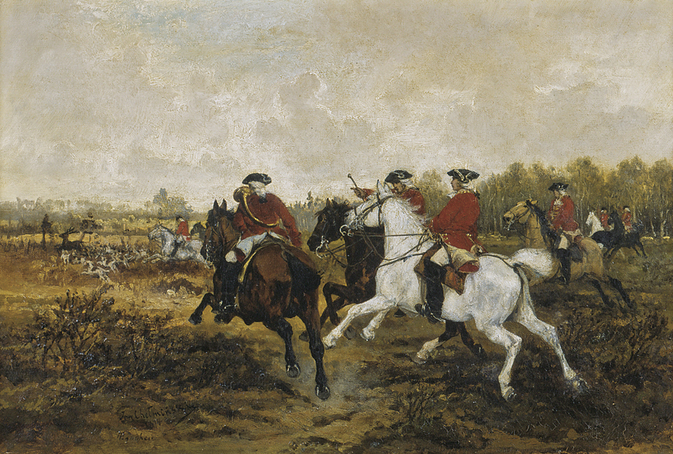 Jan Chełmiński (Brzustów k. Opoczna 1851 – Nowy Jork 1925) popularny malarz z kręgu „polskich monachijczyków“, naukę rozpoczął u Juliusza Kossaka, a następnie kształcił się w warszawskiej Klasie Rysunkowej oraz w Monachium - w Akademii u Alexandra Strähubera i Alexandra Wagnera (1873-1875) i prywatnych pracowniach Józefa Brandta (1875) i batalisty Franza Adama (1876). Po studiach przebywał już stale za granicą - w Monachium, Londynie (lata 1882, 1888-1899), Paryżu (1899), jeździł do Petersburga (1889) i Nowego Jorku (1884), gdzie później, około 1915 zamieszkał na stałe. Nie zerwał jednak kontaktów z krajem, a swoje prace często przesyłał na warszawskie wystawy. Jego obrazy cieszyły się ogromnym powodzeniem. Malował przede wszystkim sceny wojskowe i batalistycznie, najchętniej z czasów Księstwa Warszawskiego i wojen napoleońskich, a także obrazy rodzajowe i epizody z polowań. Zajmował się ilustracją książkową; m.in. ilustrował tom myśliwskich opowiadań Theodora Roosevelta. Był kolekcjonerem dawnej broni i wybitnym znawcą żołnierskiego umundurowania. Wiele obrazów artysty wciąż znajduje się za granicą - w Anglii, Niemczech czy Stanach Zjednoczonych. Nieliczne z nich pojawiają się w sprzedaży antykwarycznej, stale budząc żywe zainteresowanie zbieraczy.