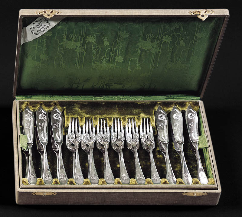 KOMPLET SZTUĆCÓW DO RYB NA 12 OSÓB, ok. 1900