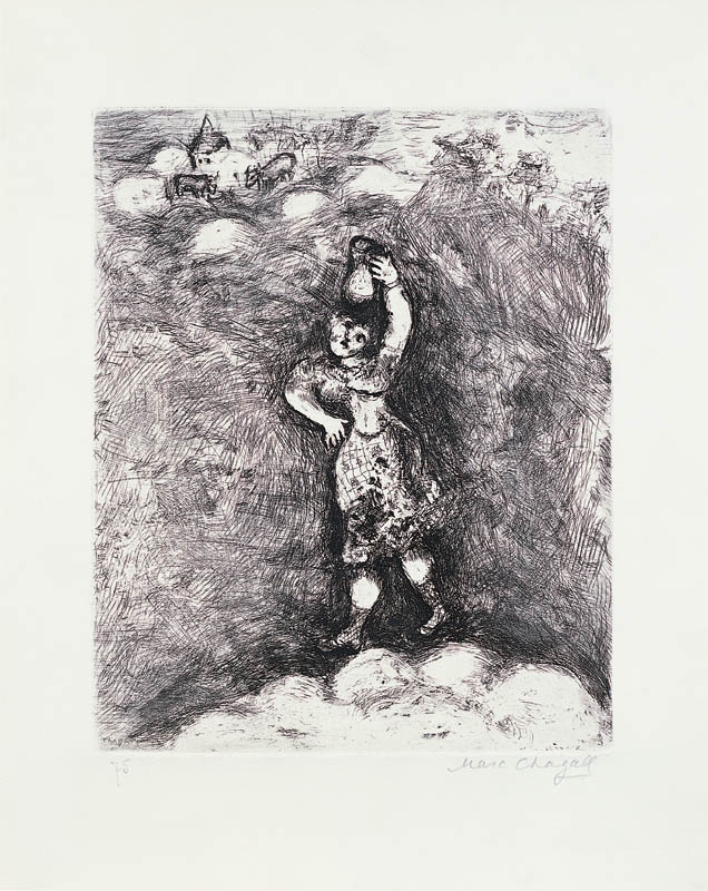 Marc Chagall uczył się rysunku u witebskiego malarza nazwiskiem Juda Pen, następnie od 1907 studiował w Akademii petersburskiej. W 1910 wyjechał na stypendium do Paryża. Zamieszkał w La Ruche na Montparnassie, wszedł do kręgu artystów, wśród których byli m.in. Modigliani, Soutine, Delaunay. W 1914 wrócił do Witebska, w 1915 poślubił Bellę (zm. 1944), muzę i bohaterkę wielu obrazów. W latach 1915-1917 mieszkał w Sankt Petersburgu, gdzie zastała go rewolucja. Mianowany komisarzem sztuk pięknych na obszar Witebska, założył tam i prowadził w latach 1918-1919 szkołę artystyczną, której profesorami byli m.in. Kazimierz Malewicz i El Lissitzky. W 1919 przeniósł się do Moskwy, gdzie do 1922 był kierownikiem artystycznym Państwowego Teatru Żydowskiego. W 1923 ostatecznie opuścił Rosję, osiedlając się w Paryżu. We Francji spędził resztę życia, z przerwą w latach 1941-1947, kiedy to schronił się w Nowym Jorku. Jego styl, wykształcony w młodości niezależnie od równoległych kierunków w sztuce, pozostał w ciągu życia artysty mało zmieniony. Wyobraźnia i sposób obrazowania Chagalla, zbliżone do sztuki naiwnej, wpisały się najsilniej w nurt surrealizmu, stając się jego znaczącym rozszerzeniem. Chagall łączył poetyckość i cudowność swych fantazji z rozwiniętym warsztatem malarza-kolorysty. Był też utalentowanym i płodnym grafikiem (cykle ilustracji do "Martwych dusz" Gogola, 1923-1927, "Bajek" La Fontaine’a, 1927-1930, Biblii, 1931-1955 – każdy cykl liczył ponad 100 plansz w technikach metalowych). Zajmował się scenografią (projekty dla Metropolitan Opera w Nowym Jorku, 1945, Opery w Paryżu, 1958), malarstwem monumentalnym (plafon w Operze paryskiej, 1963-1964), projektował witraże, dekoracje ceramiczne.