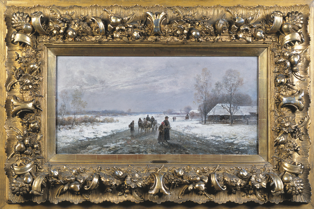 PEJZAŻ ZIMOWY Z DROGĄ, przed 1900