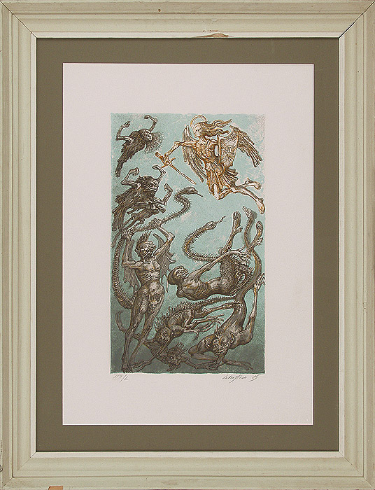 Jan Lebenstein (Brześć Litewski 1930 - Kraków 1999) w latach 1948-1954 studiował malarstwo w ASP w Warszawie pod kierunkiem prof. Eugeniusza Eibischa i Artura Nachta-Samborskiego. W 1955 wziął udział w wystawie w warszawskim Arsenale. Zaprzyjaźniony w czasie studiów z Mironem Białoszewskim, swą pierwszą wystawę indywidualną pokazał w 1956 w Teatrze na Tarczyńskiej. W 1959 zdobył Grand Prix de la Ville de Paris na I Biennale Młodych w Paryżu i w tym roku przeniósł się na stałe do Paryża. Po seriach "figur kreślonych" (na papierze milimetrowym) i "figur hieratycznych" z lat 1955-1958 maluje cykl "figur osiowych" (1958-1962), które wystawia w Paryżu i USA. Równolegle w 1960 zaczyna rysowane "karnety", rodzaj dziennika, który w przyszłości dostarczy motywów wykorzystanych w obrazach. W latach 1964-1965 maluje "Bestiarium", cykl fakturowych, archaizowanych stworów przypominających prehistoryczne wykopaliska. Bezpośrednio po nich wprowadza do swych obrazów postaci ludzkie i fantastyczne, odgrywające sceny ni to mitologiczne, ni to ze snu, często przesycone erotyką. W 1970 projektuje witraże dla Centre du Dialogue w Paryżu. W W 1971 otrzymuje obywatelstwo francuskie 1974 powstają gwasze inspirowane Folwarkiem zwierzęcym George'a Orwella. W latach 1976-1989 tworzy wyłącznie w technice gwaszu i pastelu, podejmując tematykę mitologiczną i zaczerpniętą z Biblii: cykle ilustracji do Księgi Hioba (wyd. 1979) i do Apokalipsy (wyd. 1986) w nowych przekładach Czesława Miłosza. W 1989 powraca do malarstwa olejnego (cykl "Pergamon"). Artysta otrzymał m. in. nagrodę Fundacji im. Alfreda Jurzykowskiego w 1976, Nagrodę Muzeum Archidiecezji Warszawskiej w 1985, Nagrodę im. Jana Cybisa w 1987.