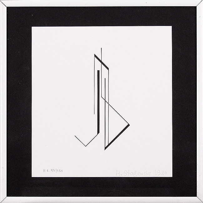 Henryk Stażewski (Warszawa 9 I 1894 - Warszawa 10 VI 1988) studiował w Szkole Sztuk Pięknych w Warszawie w latach 1913-1920. W początkach kariery malował martwe natury. Przejściowo wystawiał z ugrupowaniem „Formiści” (1922). Wziął też udział w Wystawie Nowej Sztuki w Wilnie w 1923. O tego czasu tworzył pod wpływem konstruktywizmu. Obok kompozycji malarskich trudnił się grafiką książkową, projektował wnętrza, sprzęty, a także scenografie – były to w większości prace teoretyczne i studyjne. Polskie i międzyna-rodowe ugrupowania awangardy, z którymi wystawiał i współpracował jako publicysta, to kolejno: „Blok” (1924-1926), „Praesens” (1926-1930), „Cercle et Carré” (1929-1931), „Abstraction-Création” (1931-1939), „a. r.” (1932-1939). Należał też do Koła Artystów Grafików Reklamowych (1933-1939). W 1930 był współorganizatorem zbiórki dzieł artystów międzynarodowej awangardy przeznaczonych dla muzeum łódzkiego (obecnie w Muzeum Sztuki w Łodzi). Po II wojnie mieszkał i działał w Warszawie. W latach 40. i 50. podejmował próby dostosowania się do postulatów sztuki figuratywnej. Z tego okresu pochodzą rysunkowe i malarskie kompozycje o tematyce pracy, budowy, a także projekty monumentalne. Po 1956, uznawany powszechnie za patrona polskiej awangardy, uprawiał już wyłącznie abstrakcję o konstruktywistycznym rodowodzie. Tworzył cykle prac, będących studiami płaszczyzn, linii, kolorów w różnych układach względem siebie. Przy pozorach chłodnej perfekcji umiał nasycić je emocją bezpośredniego dotknięcia, śladu ręki. Obok malarstwa i form pochodnych, jak collages, reliefy, multiple, tworzył formy przestrzenne i grafikę (autoryzował serigraficzne repliki swoich prac). Był laureatem wielu nagród i odznaczeń krajowych i zagranicznych, w tym Nagrody Herdera, Wiedeń 1972.