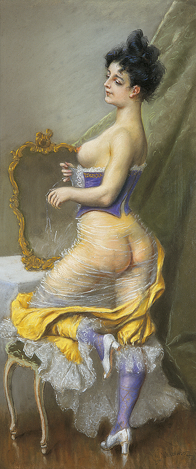 Technicznie bardzo zdolny, wykonał mnóstwo niewielkich obrazów modnego z końca XVI lub początku XVII w. - epoki, która sumiennie wystudiował. Uczty, tańce, odwiedziny, trefnisie, pazie, Walezjusze, Buckinghamy - dostarczyli mu anegdot historycznych niezbyt głęboko pojętych oraz pretekstu do malowania starych szaf, krzeseł, dywanów, poduszek, kotar, puzder, koronkowych kołnierzów itp. rekwizytów kuchni historyczno-rodzajowego malarstwa.