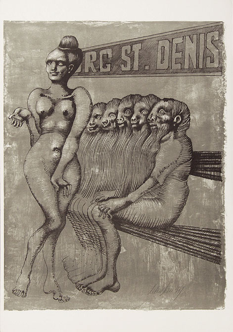 Jan Lebenstein (Brześć Litewski 1930 - Kraków 1999) w latach 1948-1954 studiował malarstwo w ASP w Warszawie pod kierunkiem prof. Eugeniusza Eibischa i Artura Nachta-Samborskiego. W 1955 wziął udział w wystawie w warszawskim Arsenale. Zaprzyjaźniony w czasie studiów z Mironem Białoszewskim, swą pierwszą wystawę indywidualną pokazał w 1956 w Teatrze na Tarczyńskiej. W 1959 zdobył Grand Prix de la Ville de Paris na I Biennale Młodych w Paryżu i w tym roku przeniósł się na stałe do Paryża. Po seriach "figur kreślonych" (na papierze milimetrowym) i "figur hieratycznych" z lat 1955-1958 maluje cykl "figur osiowych" (1958-1962), które wystawia w Paryżu i USA. Równolegle w 1960 zaczyna rysowane "karnety", rodzaj dziennika, który w przyszłości dostarczy motywów wykorzystanych w obrazach. W latach 1964-1965 maluje "Bestiarium", cykl fakturowych, archaizowanych stworów przypominających prehistoryczne wykopaliska. Bezpośrednio po nich wprowadza do swych obrazów postaci ludzkie i fantastyczne, odgrywające sceny ni to mitologiczne, ni to ze snu, często przesycone erotyką. W 1970 projektuje witraże dla Centre du Dialogue w Paryżu. W W 1971 otrzymuje obywatelstwo francuskie 1974 powstają gwasze inspirowane Folwarkiem zwierzęcym George'a Orwella. W latach 1976-1989 tworzy wyłącznie w technice gwaszu i pastelu, podejmując tematykę mitologiczną i zaczerpniętą z Biblii: cykle ilustracji do Księgi Hioba (wyd. 1979) i do Apokalipsy (wyd. 1986) w nowych przekładach Czesława Miłosza. W 1989 powraca do malarstwa olejnego (cykl "Pergamon"). Artysta otrzymał m. in. nagrodę Fundacji im. Alfreda Jurzykowskiego w 1976, Nagrodę Muzeum Archidiecezji Warszawskiej w 1985, Nagrodę im. Jana Cybisa w 1987.