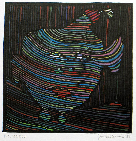 Jan Dobkowski (Łomża 1942, mieszka w Warszawie) studiował w latach 1962-1968 na Wydziale Malarstwa warszawskiej ASP pod kierunkiem prof. Juliusza Studnickiego i Jana Cybisa. Będąc jeszcze na studiach, w 1966, utworzył duet artystyczny, w którym jego partnerem był Jerzy (Jurry) Zieliński. Ich pierwsza wspólna wystawa pn. Neo-Neo-Neo odbyła się w Warszawie w 1967. Wystawiali wspólnie do 1970. W 1968 powstały pierwsze zielono-czerwone obrazy Dobkowskiego (używającego w tym czasie pseudonimu Dobson). W pracach tych, operujących giętkimi, falistymi liniami, w których upatrywano wpływów secesji, artysta używał sposobów rodem z op-artu dla wywołania złudzeń optycznych (wirowanie, mżenie, pozorny ruch form). Równolegle z obrazami tworzył też formy z płyt i folii do montowania w przestrzeni. Złoty medal na Sympozjum Złotego Grona w Zielonej Górze w 1971 i blisko roczny pobyt w USA na stypendium Fundacji Kościuszkowskiej w 1972 to kolejne etapy pełnej sukcesów kariery malarza. Wyraźną zmianę nastroju i wymowy jego prac przyniosły wydarzenia 1980-1981 roku, zwłaszcza wprowadzenie stanu wojennego. Monochromatyczne, ciemne płótna znaczył wtedy nikłymi, wiotkimi liniami rysunku. Najczęstszym motywem były patriotyczne i religijne symbole, dopowiadane tytułami nawiązującymi do realiów czasu. Kolejna radykalna zmiana nastąpiła ok. 1990. Symbolicznym zwiastunem nowego okresu stał się olbrzymi, radosny, eksplodujący bogactwem barw, kształtów i ruchu obraz ...a życie sobie płynie... (394 x 588 cm) z 1990-1991. Podobne cechy formalne charakteryzują twórczość artysty w całej dekadzie lat 90. Równolegle z malarstwem Dobkowski pracuje nad rysunkiem, będącym bardzo ważnym dopełnieniem jego twórczości.