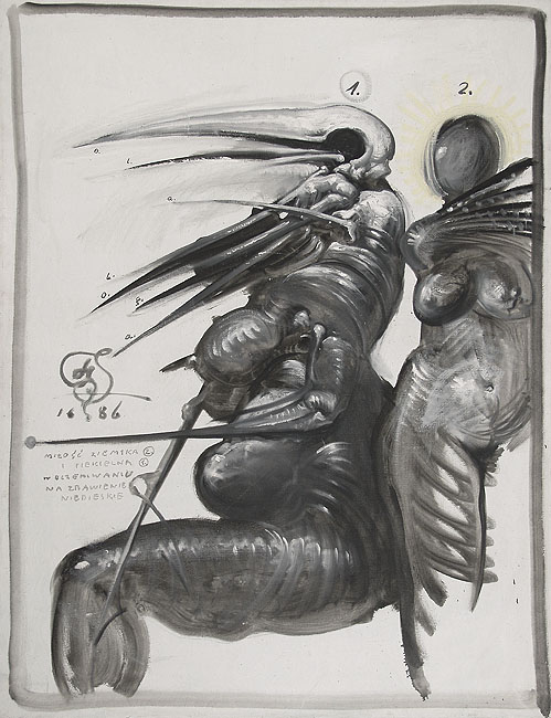 Franciszek Starowieyski (Bratkówka koło Krosna 8 VII 1930 – Warszawa 23 II 2009), używający pseudonimu Jan Byk, studiował w latach 1949-1952 w ASP w Krakowie pod kierunkiem prof. Wojciecha Weissa , po czym kontynuował studia w ASP w Warszawie, uzyskując w 1955 dyplom w pracowni prof. Michała Byliny. W latach 60. i 70. największe uznanie zdobył jako twórca plakatu, w którym szybko dorównał koryfeuszom tej dziedziny sztuki w Polsce. Uprawiał plakat typu autorskiego, o rozpoznawalnym stylu bazującym na zamaszystym i zarazem kaligraficznym rysunku, przede wszystkim zaś zaskakujących, surrealistycznych skojarzeniach. Od 1964 był kierownikiem artystycznym modnego miesięcznika „Ty i Ja”. Z czasem przewagę w jego dokonaniach zdobył „czysty” rysunek, od 1980 często prezentowany w formie dynamicznych seansów tzw. Teatru Rysowania, z udziałem modelek, publiczności i samego artysty, spełniającego się w nim w roli demiurga. Tworzył wiele kompozycji malarskich i rysunkowych emanujących surrealną atmosferę życia na skraju fizycznego rozpadu, będących współczesną wersją tematu vanitas. Zafascynowany kulturą baroku, artysta od 1970 antydatował wszystkie prace o 300 lat wstecz. Artysta był laureatem licznych nagród, które zdobywał m.in. na takich wystawach, jak Biennale Sztuki w Sao Paulo 1973, Międzynarodowa Wystawa Plakatu Filmowego, Cannes 1974, „Annual Key Award”, Los Angeles 1978. Wielokrotnie przebywał w Nowym Jorku na zaproszenie Fundacji Kościuszkowskiej. W 1980 był profesorem w Berliner Hochschule der Künste, w latach 90. wykładał w Europejskiej Akademii Sztuk w Warszawie.