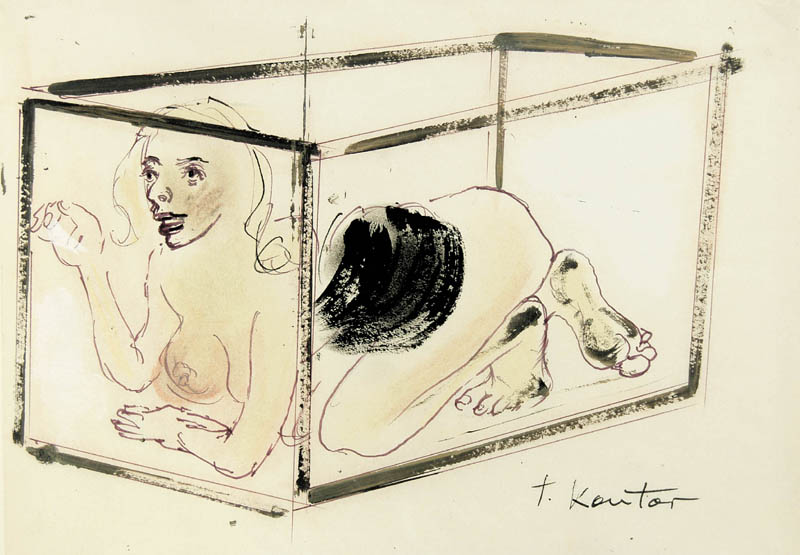 Tadeusz Kantor (Wielopole Skrzyńskie 1915 - Kraków 1990) studiował scenografię w ASP w Krakowie w latach 1934-1939. W 1942 założył Teatr Podziemny, który działał do 1944, dając dwa spektakle: "Balladynę" i "Powrót Odysa". W trakcie prac nad spektaklami zawiązało się grono artystów, którzy w 1945 utworzyli pod wodzą Kantora „Grupę Młodych Plastyków“. Ta z kolei stała się zalążkiem zarówno eksperymentalnego teatru Cricot 2 (utworzonego w 1955), jak i drugiej „Grupy Krakowskiej“ (utworzonej w 1957). W 1947 Kantor przebywał na rocznym stypendium w Paryżu, po powrocie był jednym z organizatorów I Wystawy Sztuki Nowoczesnej, Kraków 1948/49. W latach 1950-1954 nie uczestniczył w wystawach. Od 1955 jego twórczość biegła dwutorowo. Z jednej strony działał jako malarz, twórca „ambalaży“, od 1965 happeningów, z drugiej - poświęcał się pracy nad kolejnymi spektaklami Cricot 2, z których każdy był wydarzeniem artystycznym, zwłaszcza od lat 70.: "Umarła klasa" (premiera 1975), "Wielopole, Wielopole" (1980), "Niech sczezną artyści" (1985), "Nigdy tu już nie powrócę" (1988); zmarł po ostatniej próbie spektaklu "Dzisiaj są moje urodziny" (premiera 1991). Współpracował stale z galeriami: Krzysztofory w Krakowie (gdzie również miał siedzibę teatr Cricot 2) i Foksal w Warszawie. Od 1979 wraz z teatrem Cricot 2 przebywał głównie we Florencji. Był teoretykiem sztuki i teatru, autorem wielu manifestów. Uczestniczył w wystawach miedzynarodowych najwyższej rangi, jak Documenta w Kassel (1959, 1965), Biennale w Wenecji (1960), Biennale w Sao Paulo (1967). Otrzymał m.in. Prix Rembrandt Fundacji Goethego, Bazylea 1978, Medal „Arts et Lettres“ Ministra Kultury Francji 1982, nagrodę Fundacji im. Alfreda Jurzykowskiego, Nowy Jork 1982 i wiele nagród teatralnych.