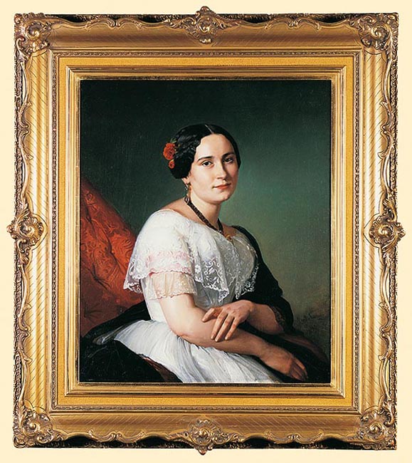 Józef Simmler - portrecista i autor obrazów historycznych - naukę rozpoczął w Warszawie u Jana Feliksa Piwarskiego, Józefa Richtera i Bonawentury Dąbrowskiego. Następnie studiował w Akademii drezdeńskiej u K.W.Schuriga; w 1842 w Monachium - w Akademii u Heinricha Petera Hessa, Juliusa Schnora v. Carosfeld i prywatnie u Bonawentury Genellego; w 1844 ponownie w Dreźnie u Edwarda Bendemana. W latach 1845-1847 przebywał w Warszawie, gdzie zdobył uznanie jako portrecista. W latach 1847-1849 był w Paryżu, po powrocie osiadł w Warszawie, skąd na dłużej wyjeżdżał jeszcze do Włoch i Paryża. Simmler, romantyczny akademik, malował obrazy historyczne, wśród których największą sławę zyskała Śmierć Barbary Radziwiłłówny. Tworzył też kompozycje religijne, ale był także najpopularniejszym i najbardziej poszukiwanym warszawskim portrecistą swojej epoki. Reprezentacyjne portrety jego pędzla, łączące pogłębioną charakterystykę psychologiczną z wyraźną idealizacją, w pewien sposób nobilitowały modeli.