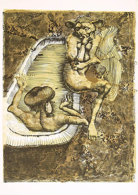 Jan Lebenstein (Brześć Litewski 1930 - Kraków 1999) w latach 1948-1954 studiował malarstwo w ASP w Warszawie pod kierunkiem prof. Eugeniusza Eibischa i Artura Nachta-Samborskiego. W 1955 wziął udział w wystawie w warszawskim Arsenale. Zaprzyjaźniony w czasie studiów z Mironem Białoszewskim, swą pierwszą wystawę indywidualną pokazał w 1956 w Teatrze na Tarczyńskiej. W 1959 zdobył Grand Prix de la Ville de Paris na I Biennale Młodych w Paryżu i w tym roku przeniósł się na stałe do Paryża. Po seriach "figur kreślonych" (na papierze milimetrowym) i "figur hieratycznych" z lat 1955-1958 maluje cykl "figur osiowych" (1958-1962), które wystawia w Paryżu i USA. Równolegle w 1960 zaczyna rysowane "karnety", rodzaj dziennika, który w przyszłości dostarczy motywów wykorzystanych w obrazach. W latach 1964-1965 maluje "Bestiarium", cykl fakturowych, archaizowanych stworów przypominających prehistoryczne wykopaliska. Bezpośrednio po nich wprowadza do swych obrazów postaci ludzkie i fantastyczne, odgrywające sceny ni to mitologiczne, ni to ze snu, często przesycone erotyką. W 1970 projektuje witraże dla Centre du Dialogue w Paryżu. W W 1971 otrzymuje obywatelstwo francuskie 1974 powstają gwasze inspirowane Folwarkiem zwierzęcym George'a Orwella. W latach 1976-1989 tworzy wyłącznie w technice gwaszu i pastelu, podejmując tematykę mitologiczną i zaczerpniętą z Biblii: cykle ilustracji do Księgi Hioba (wyd. 1979) i do Apokalipsy (wyd. 1986) w nowych przekładach Czesława Miłosza. W 1989 powraca do malarstwa olejnego (cykl "Pergamon"). Artysta otrzymał m. in. nagrodę Fundacji im. Alfreda Jurzykowskiego w 1976, Nagrodę Muzeum Archidiecezji Warszawskiej w 1985, Nagrodę im. Jana Cybisa w 1987.
