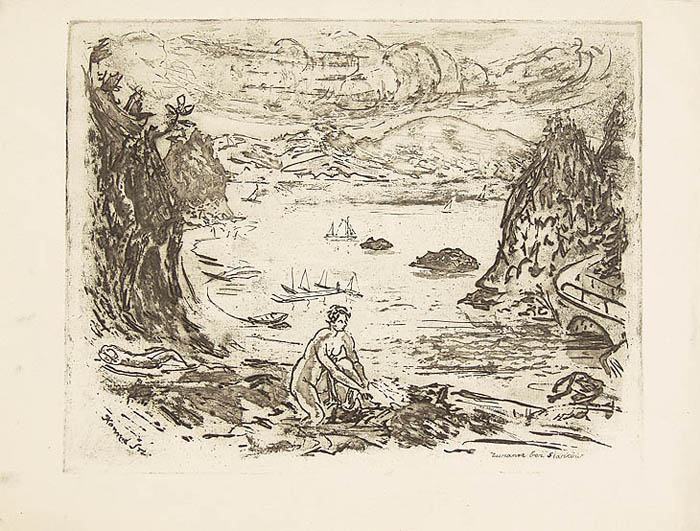 odprysk, akwaforta, akwatinta, papier krem. żeber