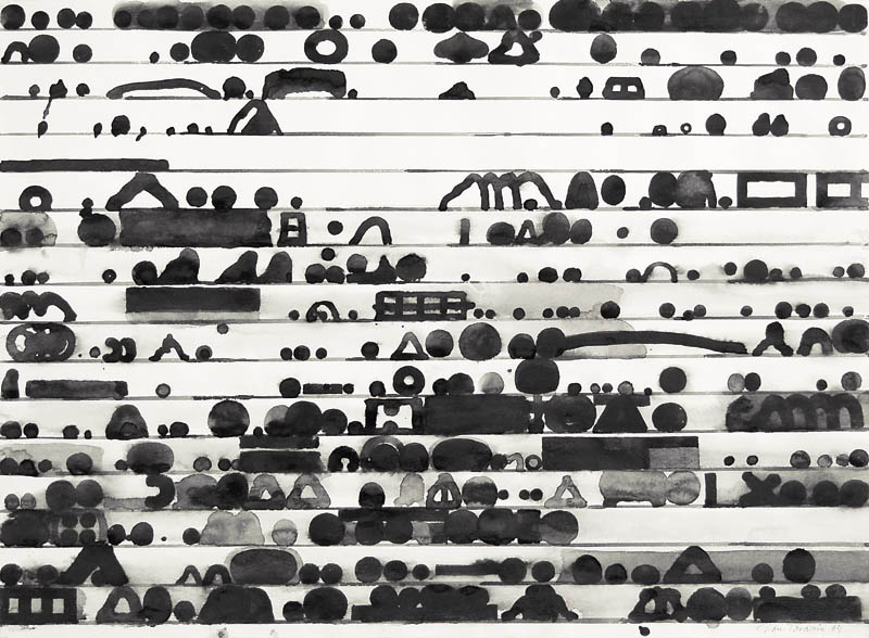 Jan Tarasin (Kalisz 11 IX 1926 - Warszawa 8 VIII 2009) studiował malarstwo w ASP w Krakowie pod kierunkiem prof. Zbigniewa Pronaszki (1946-1951). Jeszcze jako student zadebiutował na I Wystawie Sztuki Nowoczesnej w Krakowie w 1948/49. W połowie lat 50. stworzył cykle litografii: „Nowa Huta i jej mieszkańcy“, 1954, „Dom“, 1955). W pierwszym przeciwstawił się oficjalnemu optymizmowi, w drugim, operując symboliką martwej natury, zawarł treści egzystencjalne i odnoszące do niedawnego dramatu wojny. Po 1956 zaczął malować obrazy niefiguratywne. Układy wyodrębnionych elementów (określanych jako „przedmioty“) umieszczane były przez artystę na płaszczyźnie (cykl „Wnętrze“, 1957) ), lub w aluzyjnej przestrzeni (cykle „Uczta“, 1957, „Brzeg“, 1962-1964, „Przedmioty policzone“, od 1968, „Antykwariat“, 1968). Zasada ta utrzymuje się w jego malarstwie w następnych latach, różnice między okresami twórczości dotyczą sposobu opracowania „przedmiotów“ i ich usytuowania w przestrzeni obrazu lub wobec tła. Od lat 70. „przedmioty“ zmieniają się w graficzne, zwykle czarne znaki na jasnych tłach (cykl „Kolekcja“, od 1971). Tła z kolei bywają iluzyjnie przestrzenne, zróżnicowane walorowo, miękkie. W latach 90. artysta wrócił do kolorystycznego, bardziej malarskiego rozwiązywania zarówno znaków, jak i teł, często ciemnych lub przenikających się z „przedmiotami“ (cykl „Wylęgarnia przedmiotów“, 1992). Tarasin od 1962 jest członkiem „Grupy Krakowskiej“. W 1963-67 uczył na Wydziale Architektury Wnętrz krakowskiej ASP. W 1967 przeniósł się do Warszawy, w 1974 podjął pracę pedagogiczną na Wydziale Malarstwa ASP w Warszawie. W 1987-90 był rektorem tej uczelni. W 1976 otrzymał Nagrodę Krytyki Artystycznej im. Cypriana Kamila Norwida, w 1984 Nagrodę im. Jana Cybisa.; Nagroda na MB Sztuki w San Marino 1965. Równolegle z malarstwem zajmował się rysunkiem i grafiką - do lat 60. litografią, od 1974 serigrafią. W 1974-1981 wydał 8 autorskich „Zeszytów“ z serigrafiami i własnymi tekstami. W 1995 w Galerii Zachęta odbyła się wystawa artysty, której towarzyszył monograficzny katalog.