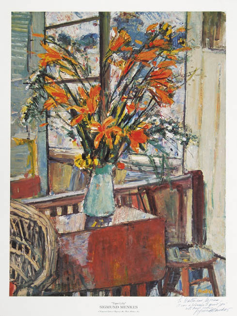 Zygmunt Menkes (Lwów 1896 - Riverdale, Nowy Jork 1986) naukę malarstwa rozpoczął pod kierunkiem Kazimierza Sichulskiego w lwowskiej Szkole Przemysłu Artystycznego. Następnie, w latach 1919-1922 studiował w krakowskiej Akademii Sztuk Pięknych u Wojciecha Weissa. W roku 1922 wyjechał do Berlina, gdzie poznał Aleksandra Archipenkę i korzystał z jego wskazówek. Od roku 1923 stale przebywał w Paryżu. Związany ze środowiskiem artystów École de Paris, przyjaźnił się, m.in. z E. Zakiem i M. Chagallem. Uczestniczył w Salonach Jesiennych, Niezależnych i Tuileries, wystawiał w wielu galeriach paryskich. Często przyjeżdżał do kraju; był członkiem lwowskiego ugrupowania Nowa Generacja i krakowskiego Zrzeszenia Artystów Plastyków Zwornik, uczestniczył w wystawach we Lwowie i w Warszawie. Wiele podróżował, m.in. w 1928 był w Berlinie, a w 1935 w Hiszpanii (razem z A. Nachtem-Samborskim). W 1935 wyjechał do Nowego Jorku, gdzie osiadł na stałe i gdzie w 1936 miał wystawę indywidualną. Przez lata współpracował z tamtejszymi galeriami sztuki i wykładał w Art Students League. Malował portrety, akty, kompozycje figuralne, martwe natury i pejzaże, a po 1940 także obrazy nawiązujące do martyrologii Żydów. Jego malarstwo ulegało różnym przemianom stylistycznym. W okresie paryskim obrazy artysty bliskie były nurtom ekspresjonizmu i fowizmu. W okresie powojennym ograniczał kolorystykę, wprowadzał mocną linię konturu, bogatą fakturę, a z czasem także coraz wyraźniejszą geometryzację form.