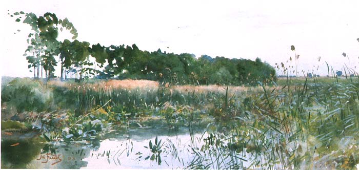 Julian Fałat (Tuligłowy [okręg lwowski] 1853 - Bystra k. Bielska 1929) - malarz i pedagog - jeden z najwybitniejszych artystów polskich okresu przełomu XIX i XX wieku, członek polskich i europejskich stowarzyszeń twórczych oraz Królewskiej Akademii Sztuk Pięknych w Berlinie, wielokrotnie odznaczany medalami na wystawach międzynarodowych. Studiował malarstwo u Władysława Łuszczkiewicza i Leona Dembowskiego w Szkole Sztuk Pięknych w Krakowie (1868-71 i 1881) i w Akademii Sztuk Pięknych w Monachium u Alexandra Strähubera i Johana Leonhardta Raaba (1877-80). Po studiach spędził kilka miesięcy w Rzymie, w 1884 był w Paryżu i w Hiszpanii, a w 1885 odbył podróż morską dookoła świata. W 1886 podczas polowania u ks. Radziwiłłów w Nieświeżu poznał późniejszego cesarza Niemiec Wilhelma II - dla którego następnie w latach 1886-95 pracował w Berlinie jako malarz nadworny. W latach 1894-96 współpracował z Wojciechem Kossakiem przy panoramie Berezyna. W 1895 został powołany na stanowisko dyrektora Szkoły Sztuk Pięknych w Krakowie, w której gruntownie zreformował system nauczania, przekształcając tę uczelnię w nowoczesną Akademię Sztuk Pięknych (r.1900). Do roku 1910 był rektorem Akademii; po przejściu na emeryturę osiadł w miejscowości Bystra k. Bielska. Znakomity akwarelista, malował także olejno. We wcześniejszym okresie tworzył w konwencji realistycznej, z czasem rozjaśnił i wzbogacił paletę, a w akwarelach wprowadzał rozlewną plamę barwną. Zasłynął jako malarz scen myśliwskich rozgrywających się najczęściej w zimowej scenerii; malował też pejzaże, wiejskie sceny rodzajowe, portrety, widoki miejskie.