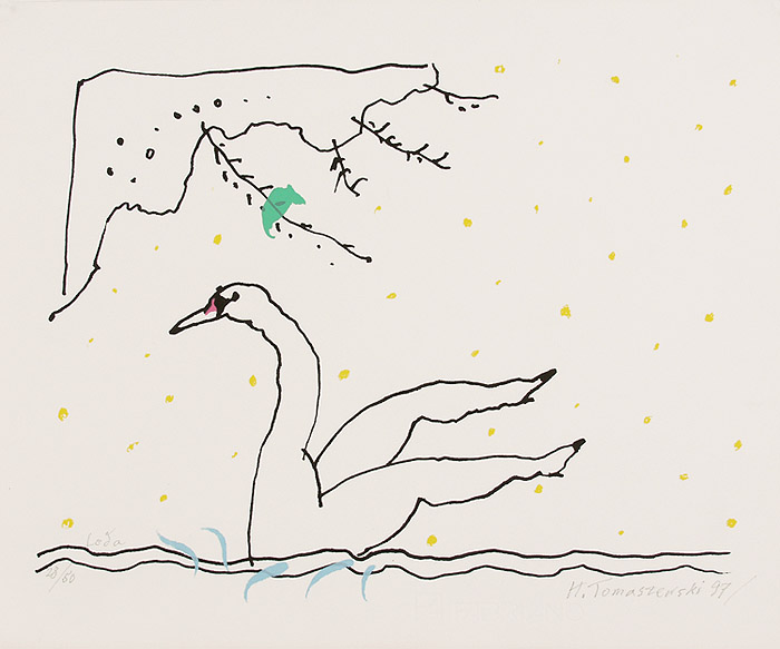 Henryk Tomaszewski (Warszawa1914-Warszawa 2005) ukończył ASP w Warszawie w 1931. Główny okres jego twórczości przypada na lata powojenne, kiedy to stał się jednym z głównych przedstawicieli fenomenu tzw. polskiej szkoły plakatu. Tomaszewski położył tu zasługi podwójnie - jako twórca i jako pedagog, pod którego opieką kształcili się młodsi plakaciści i graficy użytkowi tego nurtu. Indywidualny styl plakatów Tomaszewskiego, trudny do zdefiniowania, choć wyraziście odróżniający jego prace od innych, bazuje na trafnej metaforze, podanej lekkim, pełnym finezji i humoru rysunkiem oraz szczególnie starannie i adekwatnie do tematu opracowanym liternictwem. Twórczość plakatowa przyniosła artyście wiele nagród, poczynając od pięciu złotych medali zdobytych na Międzynarodowej Wystawie Plakatu w Wiedniu (1948), poprzez I nagrodę na VIII Biennale Sztuki w Sao Paulo (1963), I nagrodę na Międzynarodowej Wystawie Plakatu w Fort Collins, USA (1981), po złoty i srebrny medal na XII Międzynarodowym Biennale Plakatu w Warszawie (1988). Artysta otrzymał również nagrodę Fundacji Alfreda Jurzykowskiego (1984). Równolegle z plakatem tworzy rysunki, ilustracje, okładki książkowe itp., zawierając w nich (zwłaszcza w rysunkach) ogromny ładunek wyrafinowanego humoru i intelektualnej zabawy, gry słów i skojarzeń.