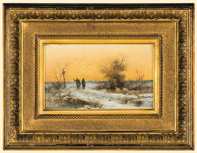 Franciszek Streitt (Brody 1839 - Monachium 1890) w latach 1856-1866 studiował w krakowskiej Szkole Sztuk Pięknych u Władysława Łuszczkiewicza i Jana Matejki, a następnie w Akademii wiedeńskiej u Eduarda Engertha. W roku 1871 osiadł na stałe w Monachium, dzieląc pracownię z przyjacielem, malarzem Antonim Kozakiewiczem. Z Monachium wyjeżdżał do Krakowa i na Węgry. We wcześniejszym okresie - jak przystało na ucznia Matejki - malował kompozycje historyczne, ale o zabarwieniu rodzajowym (Pożegnanie syna wyruszającego na wyprawę wiedeńską). Później, już w Monachium malował portrety i pejzaże oraz - przede wszystkim - rodzajowe sceny z małych polskich miasteczek czy wsi - jarmarki, wędrownych muzykantów, obozowiska Cyganów. Chętnie malował też nieco sentymentalne scenki z dziecięcymi bohaterami. W jego pracach dużą rolę odgrywała anegdota, dopowiedziana jeszcze opisowym, literackim tytułem; Zakazany owoc, Pociecha matuli, Bez jutra czy Ostatnia krówka. Obrazy artysty „pokazujące z największa wiernością życie ludu polskiego /../, znalazły jak najżywsze uznanie” i cieszyły się znacznym powodzeniem, a wiele z nich trafiało na angielski bądź amerykański rynek sztuki.