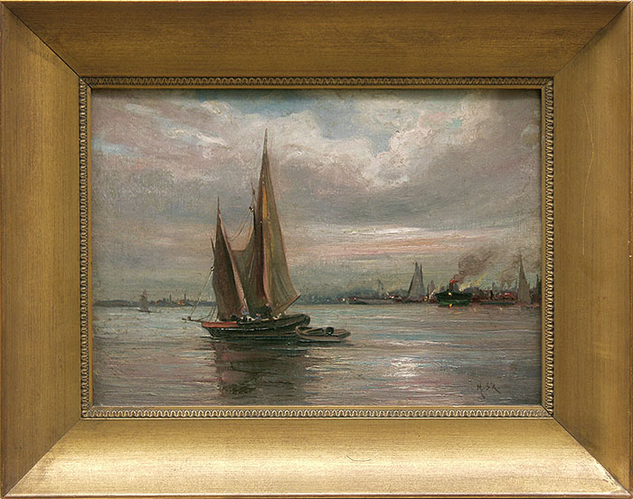ŁÓDŹ ŻAGLOWA NA TLE PANORAMY GDAŃSKA