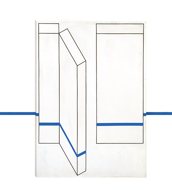 Edward Krasiński - malarz i twórca aranżacji przestrzennych w typie environment. Naukę rozpoczął w roku 1940 w Kunstgewerbeschule w Krakowie, pod kierunkiem wybitnych profesorów Wojciecha Weissa, Józefa Mehoffera a jego kolegami byli m.in. Tadeusz Brzozowski i Jerzy Nowosielski. W latach 1945-50 studiował w krakowskiej Akademii Sztuk Pięknych w pracowni prof. Jarockiego i Eibischa. Jego wczesne, nieliczne zachowane prace są surrealistycznymi kompozycjami malowanymi cienką kreską. Na początku lat 60-tych przeniósł się do Warszawy i ożenił z Hanną Ptaszkowską, krytykiem sztuki. Związał się z Galerią Krzywego Koła, w której wystawach brał udział. Tworzył wówczas obrazy przestrzenne, które miały charakter konstrukcji złożonej z deszczułek o szarej powierzchni, malowanej „informel”. Jednak tematem wiodącym w jego twórczości jest linia interpretowana w najróżniejszy sposób. W połowie lat 60-tych nawiązał aktywną współpracę z Galerią Foksal brał również udział w happeningach Kantora. Uczestniczył też w plenerach, a w czasie Panoramicznego Happeningu Morskiego Tadeusza Kantora w Osiekach (1967) zasłynął jako niezastąpiony dyrygent falami morskimi. Od roku 1969 pojawiła się niebieska linia (scotch blue), którą artysta naznaczał obrazy i przestrzeń wokół nich a także napotkane po drodze przedmioty i sprzęty. To artystyczne działanie było znakiem jego obecności i wyznaczało własny, duchowy obszar. Błękitny pasek miał szerokość 19 mm i był naklejany horyzontalnie przez artystę na wysokości 130 cm. Jego obrazy – konstrukcje zatytułowane „Interwencje” przedstawiają perspektywicznie ujęte bryły geometryczne naznaczone błękitną linią. Od roku 1970 dzielił pracownię z Henrykiem Stażewskim, z którym łączyła go przyjaźń. Miał wiele wystaw indywidualnych, brał udział w wystawach zbiorowych. Wszystkie działania twórcze Krasińskiego są dokładnie opracowane i uwzględnione w publikacjach naukowych poświęconych jego osobie, szczególnie w książce wydanej(1998) przez Galerię Sztuki Współczesnej Zachęta i Fundację Instytutu Promocji Sztuki. Był nadzwyczaj aktywnym artystą, wyżej cenionym na Zachodzie niż u nas. Na rynku dzieł sztuki obrazy Edwarda Krasińskiego są wielką rzadkością.
